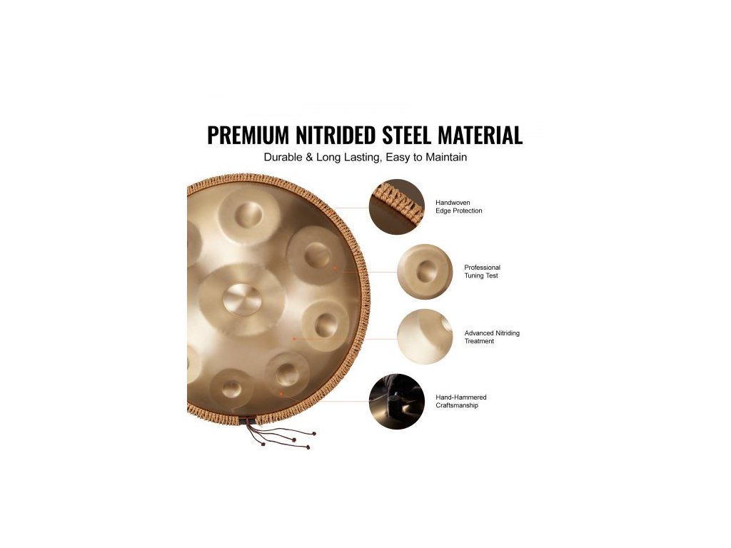 Rozměry výrobku (DxŠxV): 550 x 550 x 250 mm / 21,65 x 21,65 x 9,84 palce,Velikost: 22 palců,Barva: Zlatá,Číslo modelu výrobku: Zlatý - 9 tónový zvuk,Počet not: 9,Hmotnost výrobku: 5 kg / 11 liber,Ladicí frekvence: 440 Hz,Tónina: d moll