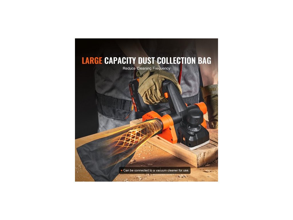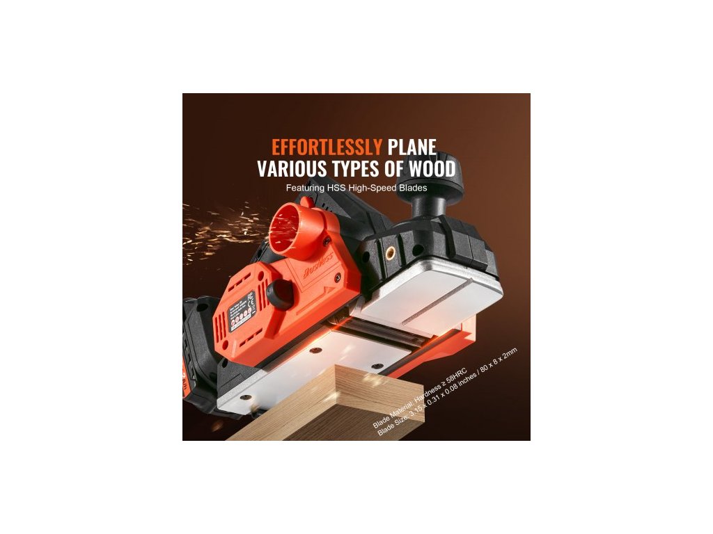Ruční hoblík s akumulátorovým elektrickým hoblíkem, šířka 3-1/4", 16500 ot./min., nastavitelná hloubka hoblování 5/64", HSS nože, oboustranný výstup prachu, pro opracování dřeva, hoblování a vyhlazování povrchů