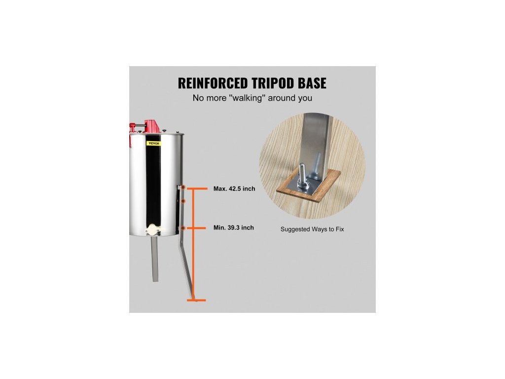 Ruční medomet , 3rámkový medomet, nerezová včelařská extrakce, voštinový buben s víkem, včelí odstředivka s výškově nastavitelným stojanem