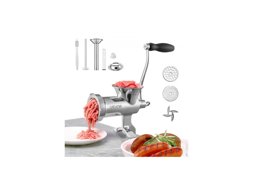 Ruční mlýnek na maso , ruční mlýnek na maso z nerezové oceli 304 s ocelovou stolní svorkou, mlýnek na maso, výrobník klobás a 2 krájecí desky, nástavec na sušenky, trubice na klobásy pro hovězí, paprikové, houbové sušenkyZažijte kulinářské lahůdky