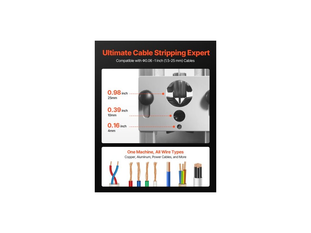 Ruční odizolovací kleště , odizolovací stroj 1,5–25 mm (0,06–1 palce), ruční nebo vrtací