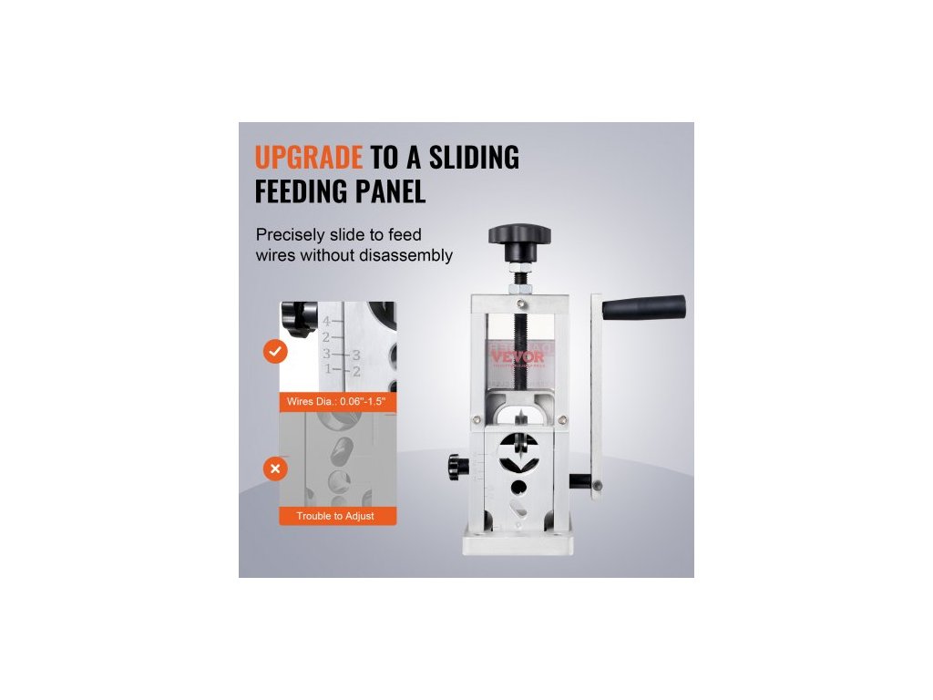 Ruční odizolovací stroj , odizolovací kleště na měděné vodiče 1,5 mm-40 mm s ruční klikou nebo vrtačkou, viditelná hloubka odizolování, přenosný hliníkový rám, odizolovací kleště na měděný šrot