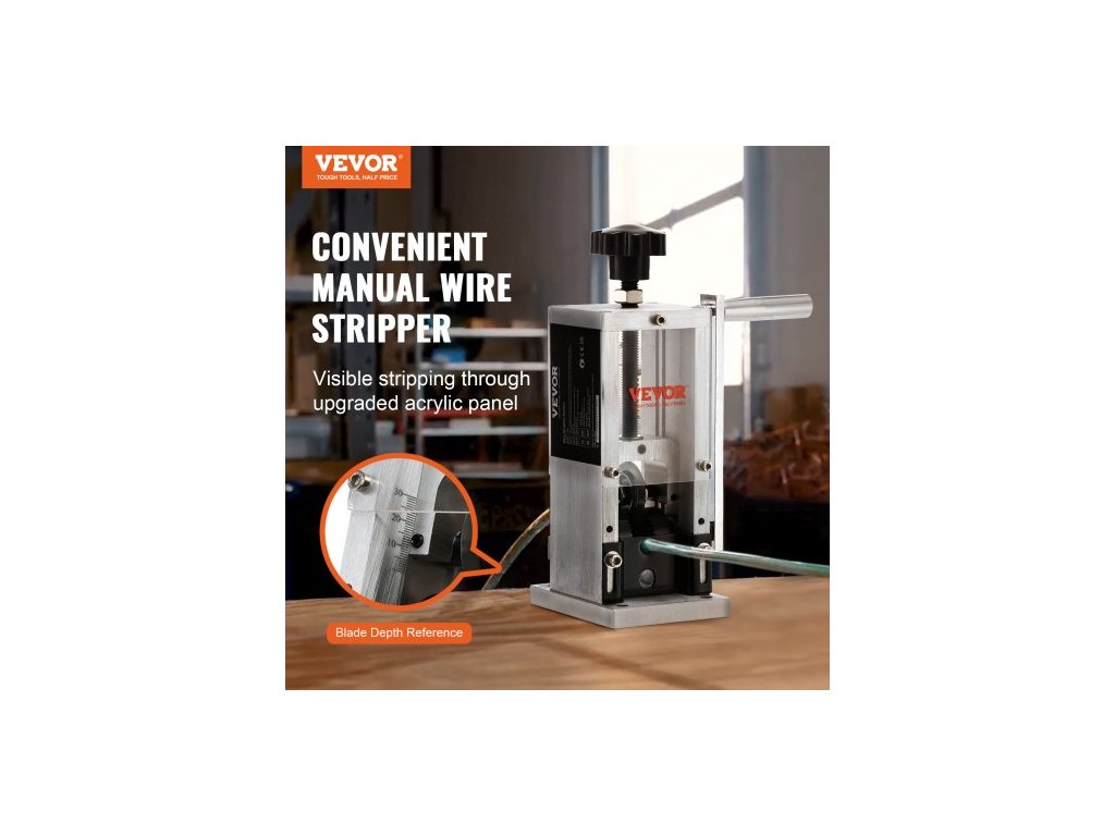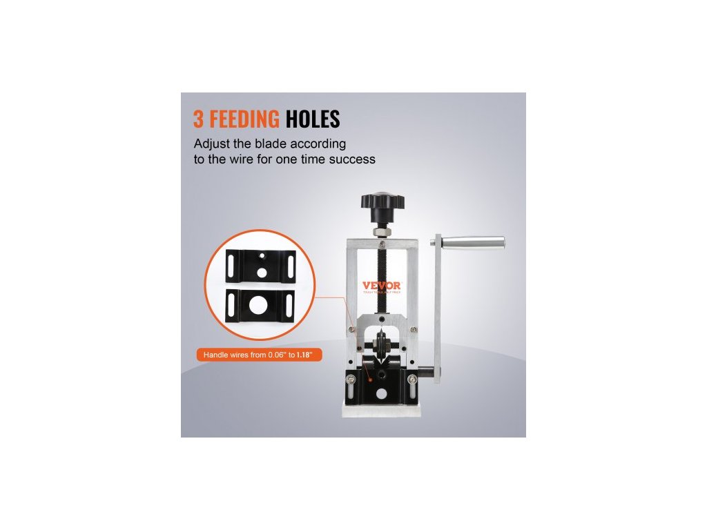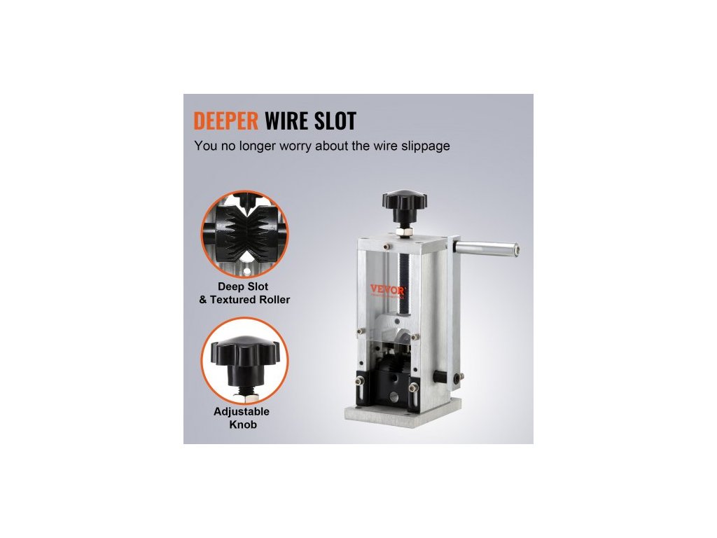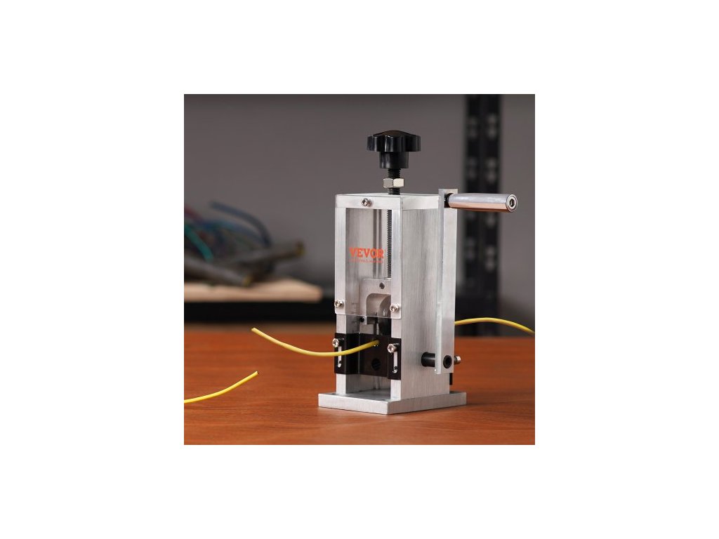Ruční odizolovací stroj , odizolovací kleště na měděné vodiče 1,5 mm–30 mm s ruční klikou nebo vrtačkou, viditelná hloubka odizolování, přenosný hliníkový rám na odizolování měděného šrotuTexturovaný váleček