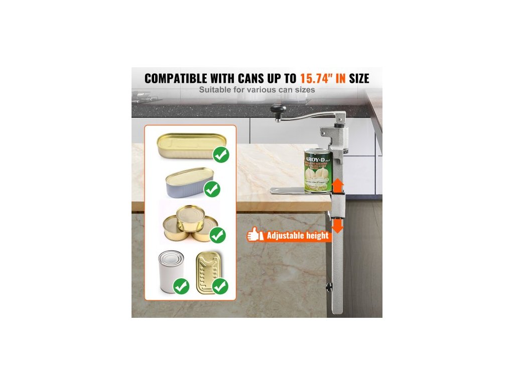 Ruční otvírák na konzervy , komerční stolní otvírák na velké konzervy, odolný otvírák na konzervy se základnou, průmyslový otvírák na sklenice s nastavitelnou výškou pro konzervy až do výšky 15,7", pro restaurace, hotely a domácí baryVhodný pro různé velikosti konzerv