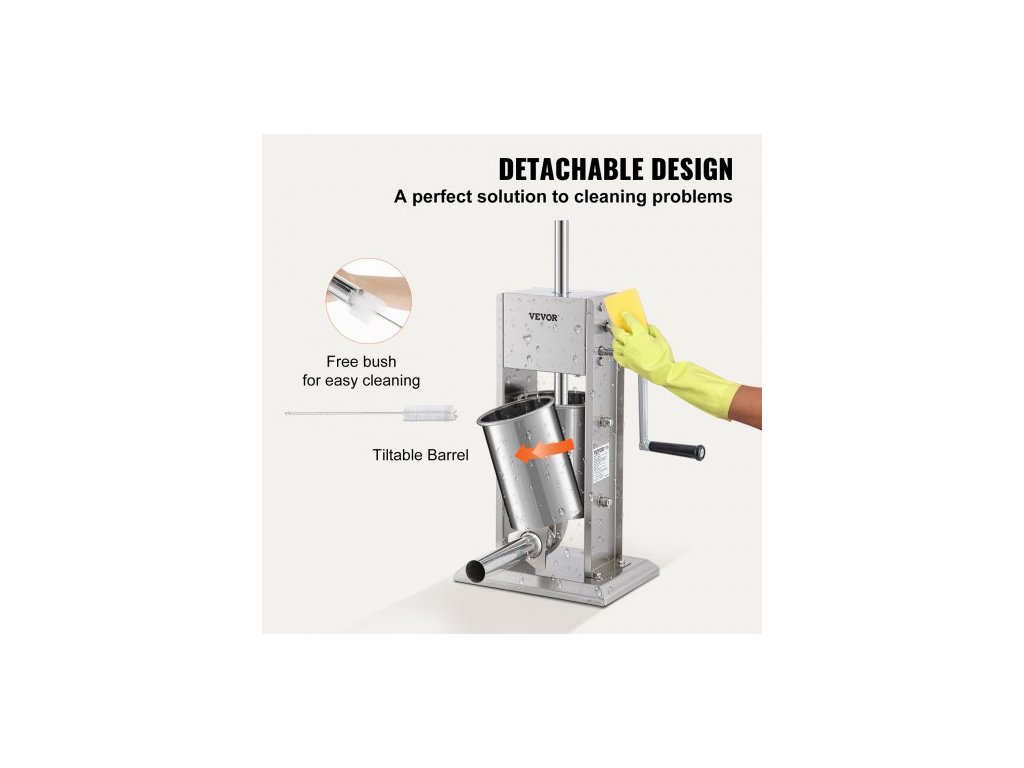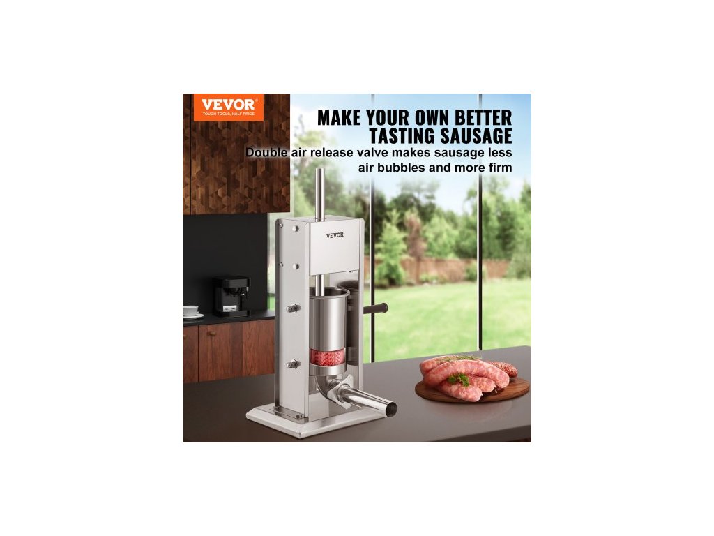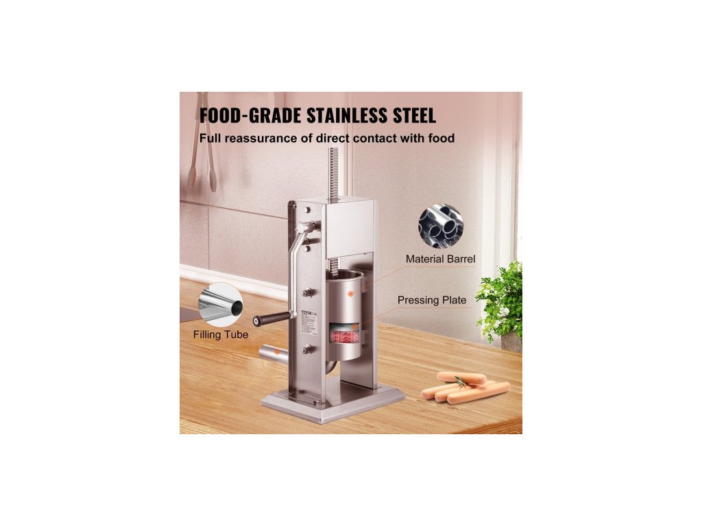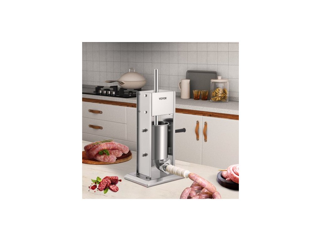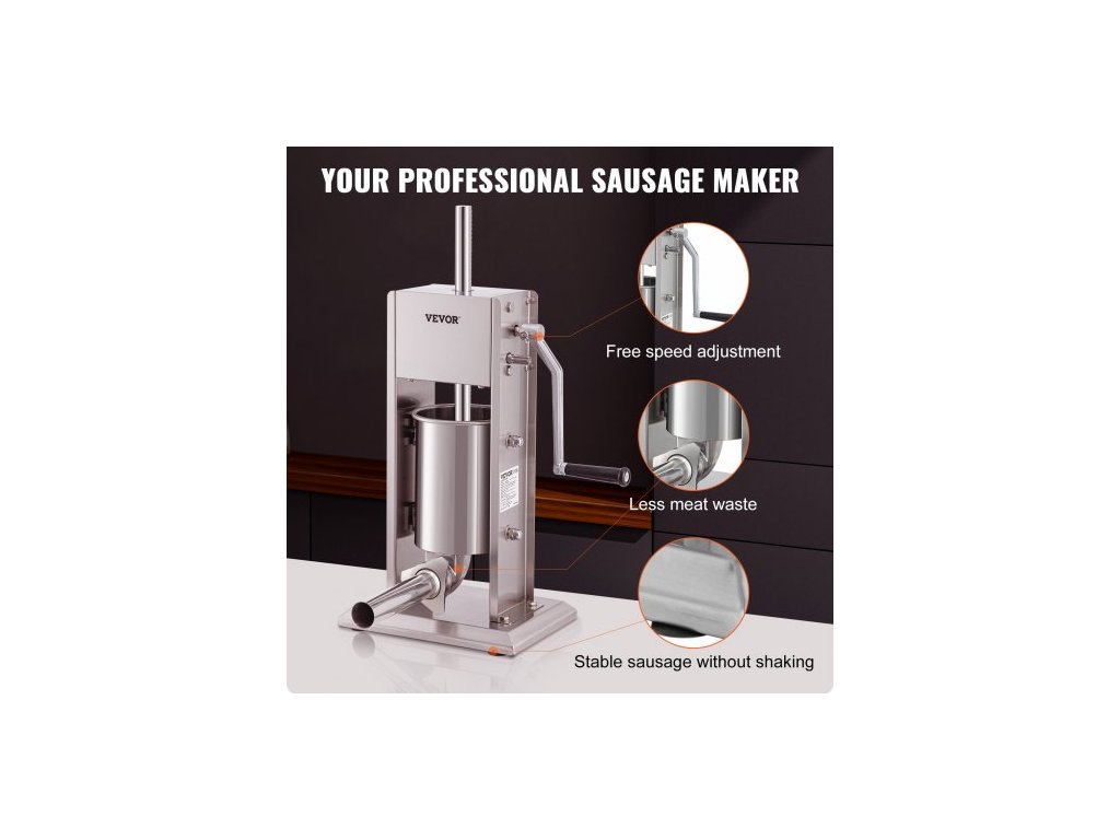 Ruční plnička klobás , objem 3 l, dvourychlostní vertikální plnička klobás z nerezové oceli 304, plnička klobás se 4 plnicími trubicemi, sací základna pro domácí i komerční použitíDva odvzdušňovací ventily