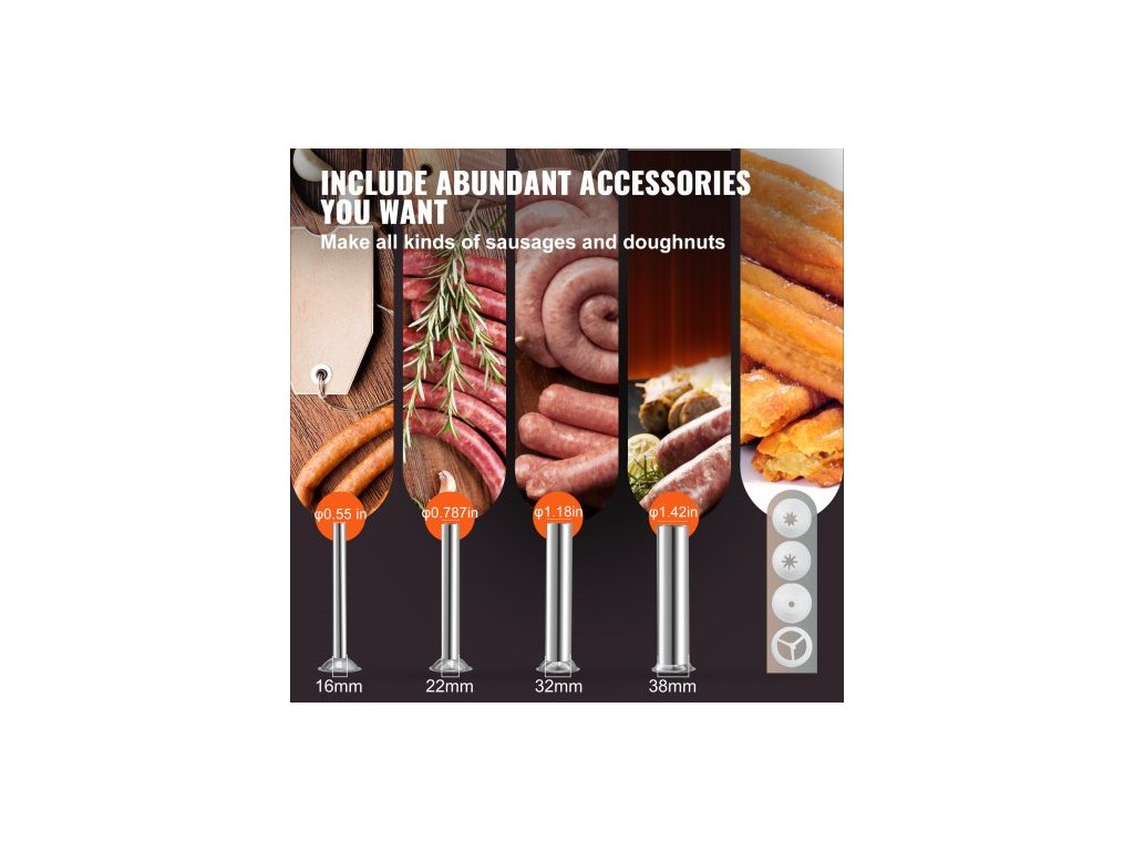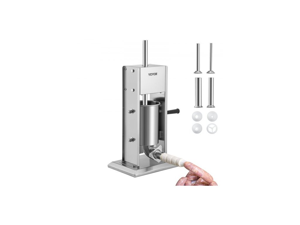 Ruční plnička klobás , objem 5 liber/3 l, dvourychlostní vertikální plnička klobás z nerezové oceli 304, plnička klobás se 4 plnicími trubicemi, sací základna pro domácí i komerční použití