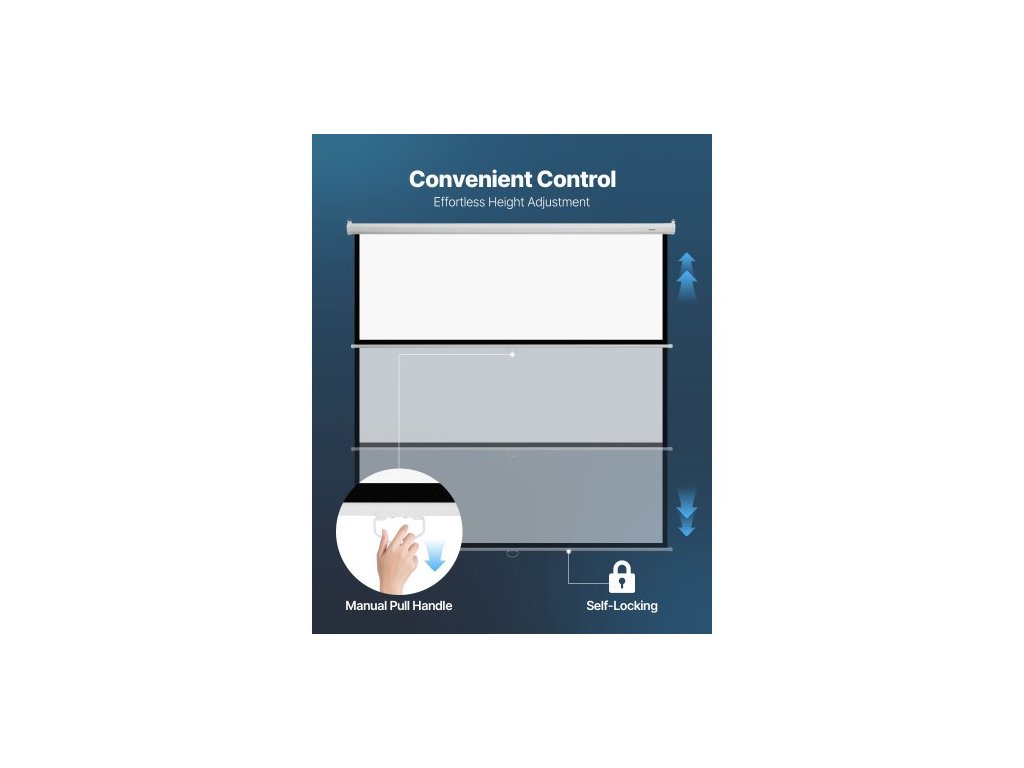 Ruční projekční plátno , 3048 mm 1:1 4K 1080 HD zatahovací projekční plátno, nástěnná projekce filmů s tažným lanem, přenosná projekce pro rodinné domácí kino a kancelář