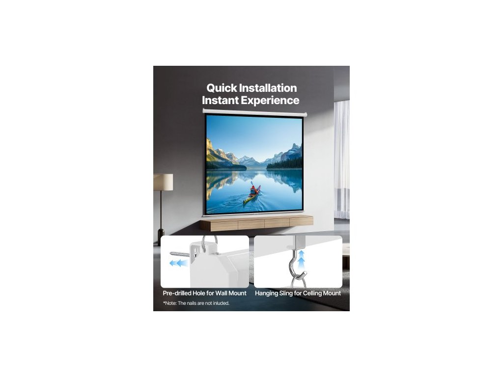 Ruční projekční plátno , 3048 mm 1:1 4K 1080 HD zatahovací projekční plátno, nástěnná projekce filmů s tažným lanem, přenosná projekce pro rodinné domácí kino a kancelářOcelová příčka