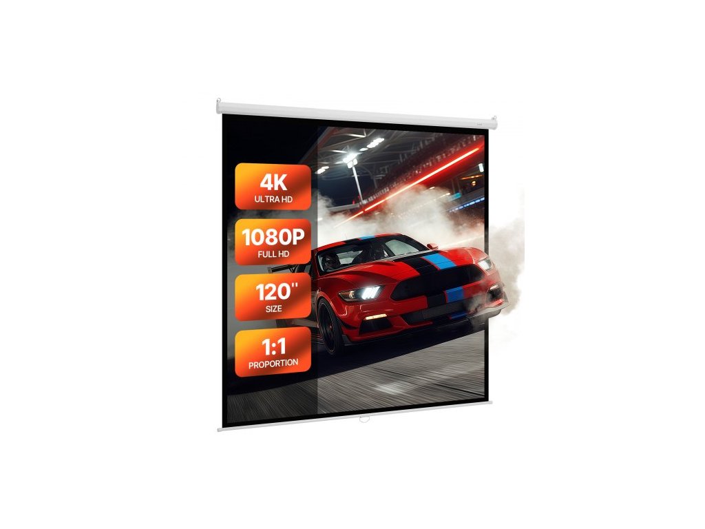 Rozměry příčky: 89,6 x 3,1 x 3,1 palce / 2275 x 80 x 80 mm,Rozměry plátna: 120 palců,Materiál plátna: Pletené bílé PVC, Zisk 1,2, 3D závěrka, 4K,Způsob ovládání: Ruční zvedání,Barva: Bílá,Tloušťka plátna: 0,35 mm; Rozměry: 2194 x 2194 mm,Materiál: Plátno: PVC; Pouzdro: Železo s vypalovanou barvou,Způsob montáže: Nástěnné,Rozměry výrobku: 89,6 x 3,5 x 92,1 palce / 2275 x 90 x 2340 mm,Poměr stran: 1:1,Velikost pouzdra: 89,6 palce / 2275 mm,Číslo modelu položky: WS120,Projekční velikost (Š x V): 2134 x 2134 mm,Příčka:Materiál: Železo;Povrchová úprava: Vypalovaná barva;Tloušťka: 0,8 mm,Čistá hmotnost: 17,2 lbs / 7,8 kg