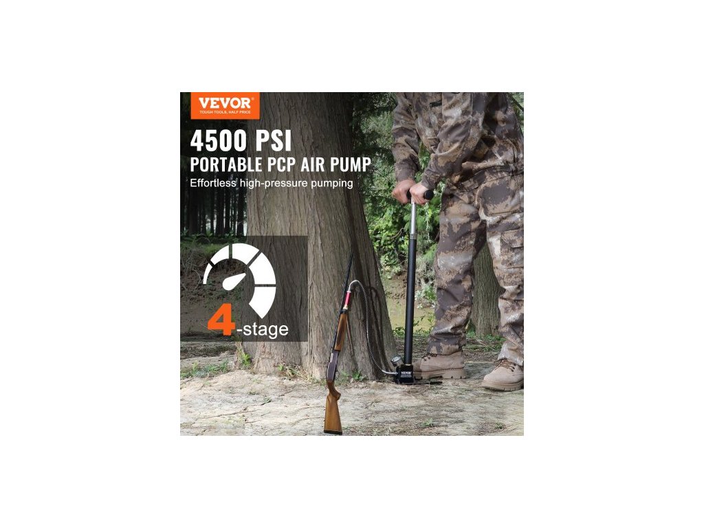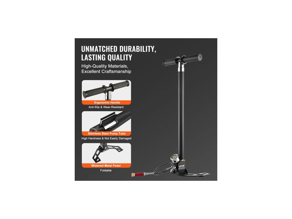 Ruční pumpa PCP, 4stupňová, 30Mpa 4500 PSI, vysokotlaká PCP vzduchová plnící pumpa s filtrem oleje a vlhkosti, manometr, nerezová ocel pro vzduchovky, potápěčské nádrže, plnění pneumatik a paintballu4stupňová technologie pumpování