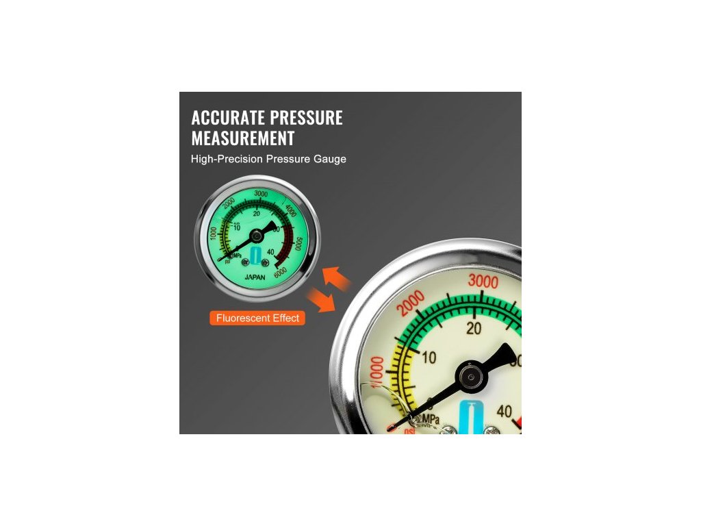 Délka hadice: 1,8 ft/560 mm,Rozsah měření tlaku: 0-6000 PSI,Číslo modelu položky: DQT-4JH,Rozměry výrobku (D x Š x V): 11 x 6,3 x 24,8-41,9 palce/280 x 160 x 630-1065 mm,Čistá hmotnost: 4,7 lbs/2,15 kg ±3%,Komora pumpy: 4stupňová,Maximální tlak: 4500 PSI, celková šířka rukojeti: 11 palců/280 mm