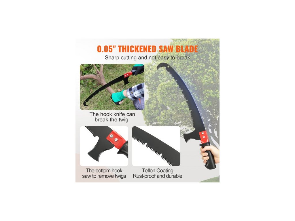 Ruční tyčová pila , výsuvné nůžky na stromy 1,5-6,1 m, ostrý ocelový nůž pro zastřihování vysokých větví, s lehkou rukojetí z hliníkové slitiny a žinylkovým kartáčem, pro prořezávání palem a keřůSnadno použitelný hákový nůž
