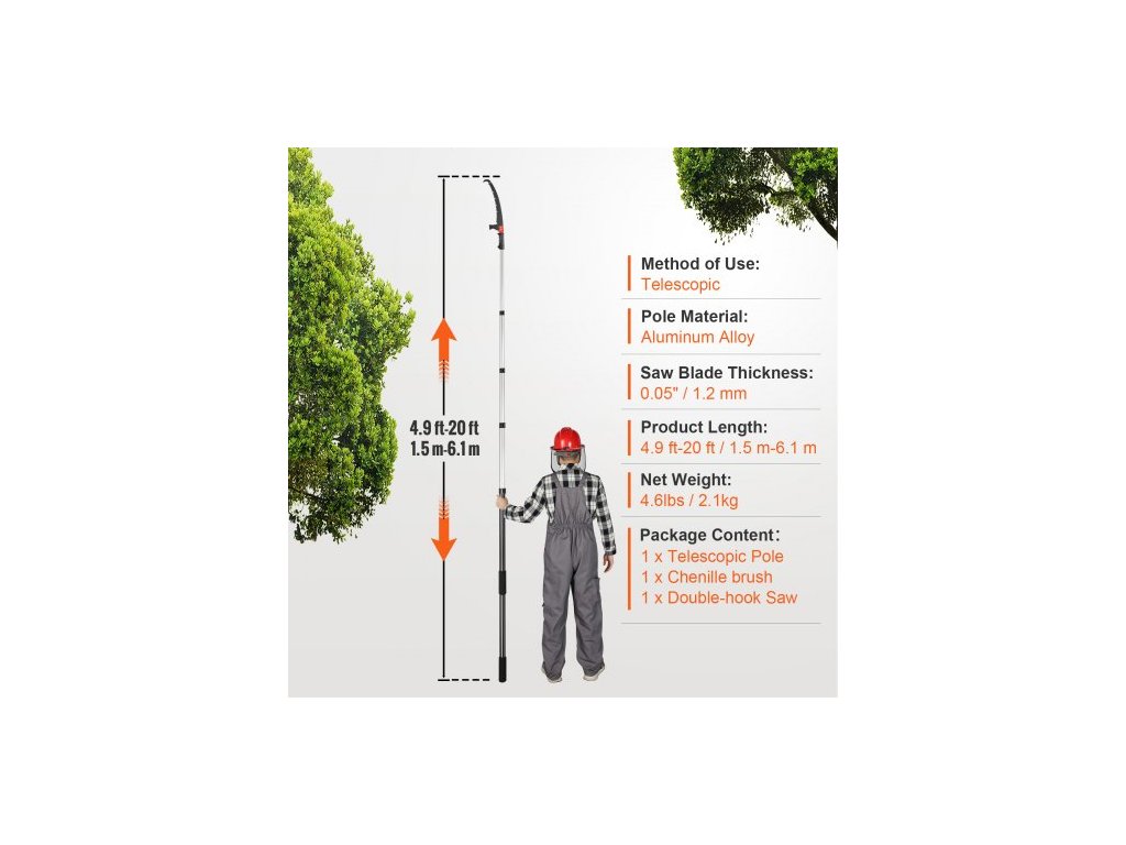 Materiál tyče: Hliníková slitina,Číslo modelu: GZJ-6m5,Délka výrobku: 1,5 m-6,1 m,Tloušťka pilového listu: 1,2 mm,Způsob použití: Teleskopický,Čistá hmotnost: 2,1 kg