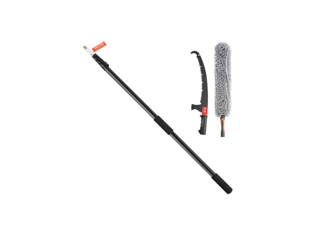 Ruční tyčová pila , výsuvné nůžky na stromy 1,5-6,1 m, ostrá ocelová čepel pro zastřihování vysokých větví, s lehkou rukojetí z hliníkové slitiny a žinylkovým kartáčem, pro prořezávání palem a keřů