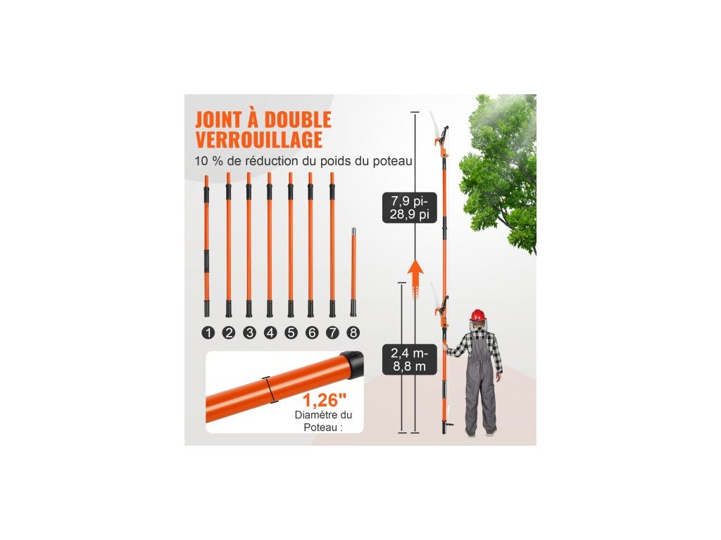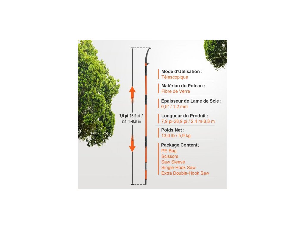 Materiál tyče: Skelné vlákno, Číslo modelu: GZJDJZ-8m8, Délka výrobku: 7,3–27 stop/ 2,24 m–8,24 m, Tloušťka pilového listu: 0,05" / 1,2 mm, Způsob použití: Sestaveno, Čistá hmotnost: 13,0 lbs / 5,9 kg