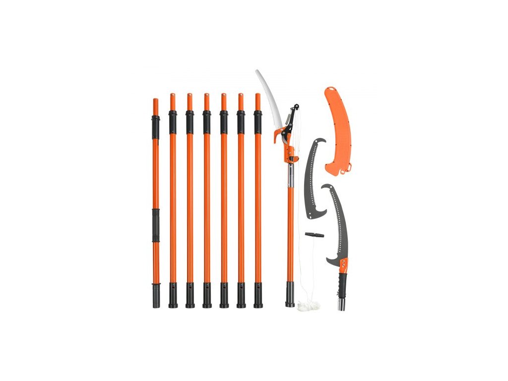 Ruční tyčová pila , výsuvné nůžky na stromy 2,2–8,2 m, ostrý ocelový nůž a nůžky, prořezávání vysokých větví, nůžky na větve s lehkými 2,4 m rukojeťmi ze skelných vláken, pro prořezávání palem a keřůUž žádné zasekávání