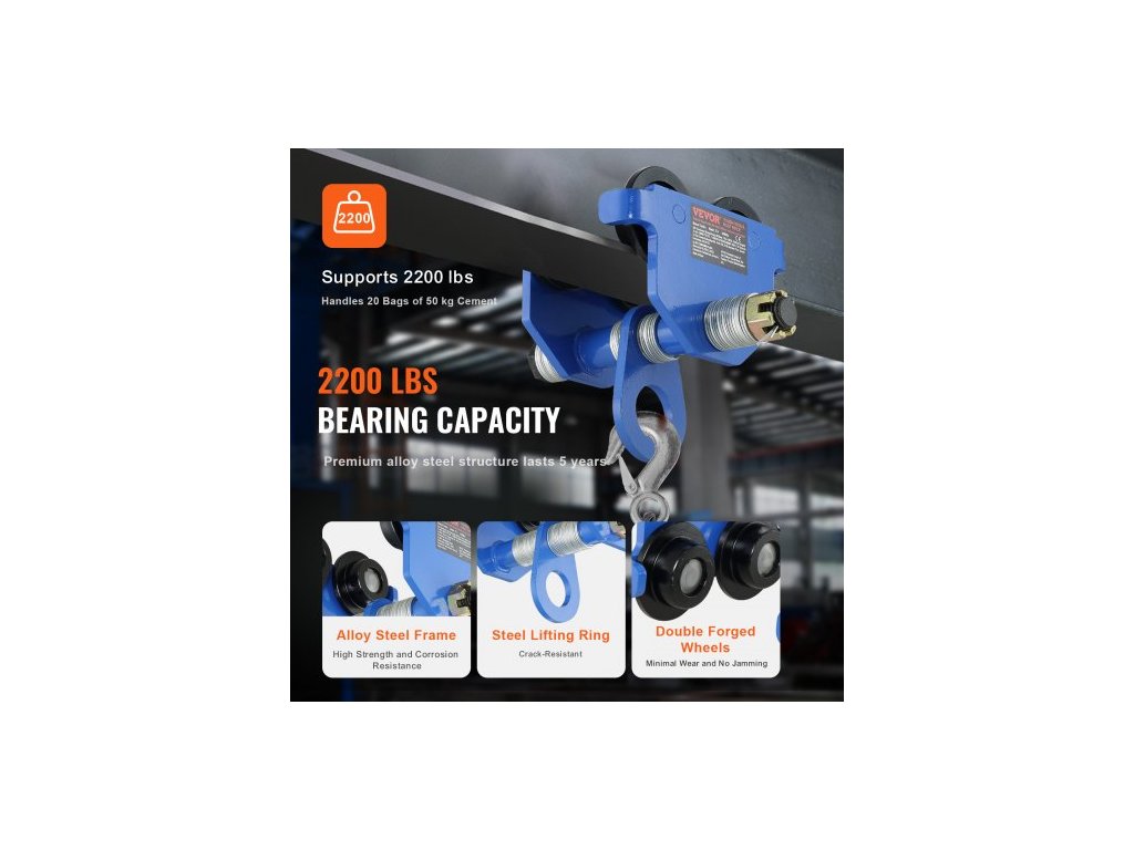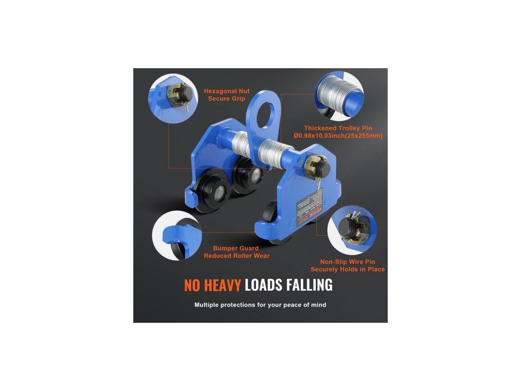 Ruční vozík , nosnost 2200 liber/1 tuna, vozík s tlačným nosníkem a dvojitými koly, nastavitelný pro šířku příruby I-nosníku 63,5–177,8 mm, těžký garážový zvedák z legované oceli pro rovný zakřivený I-nosníkSnadný pohyb