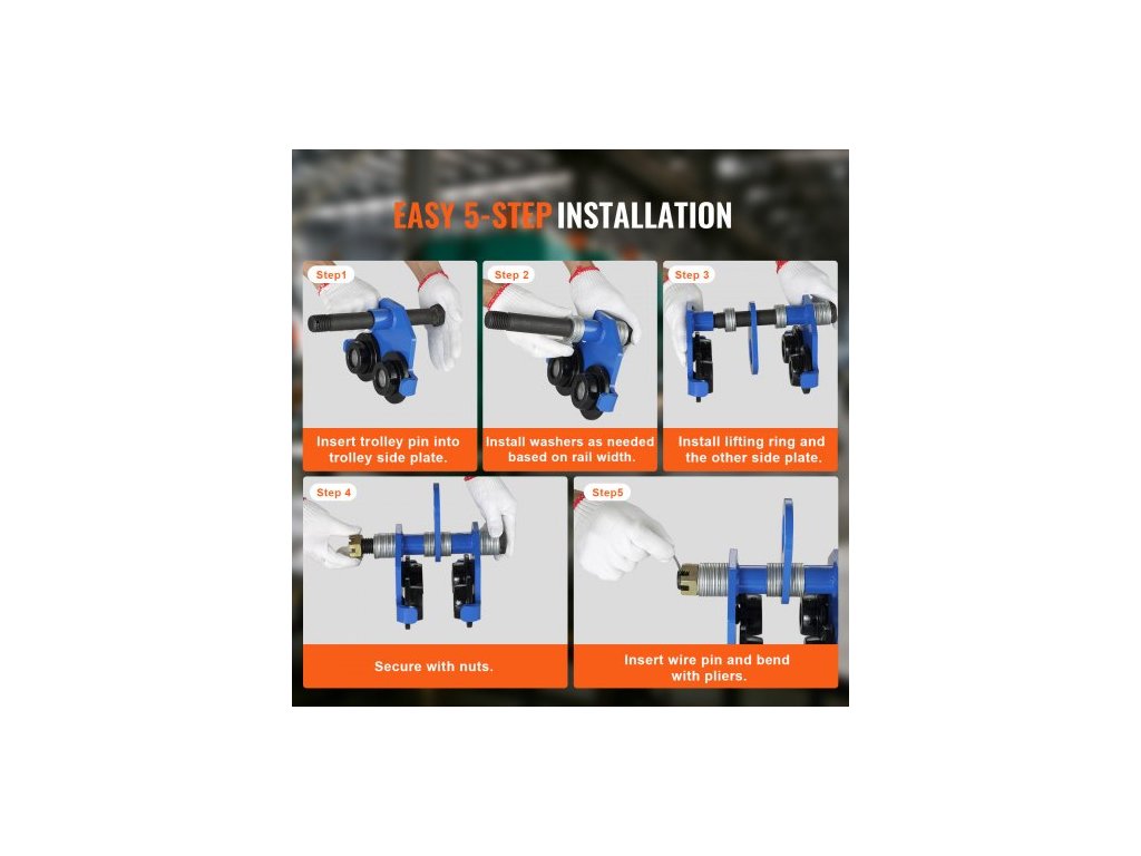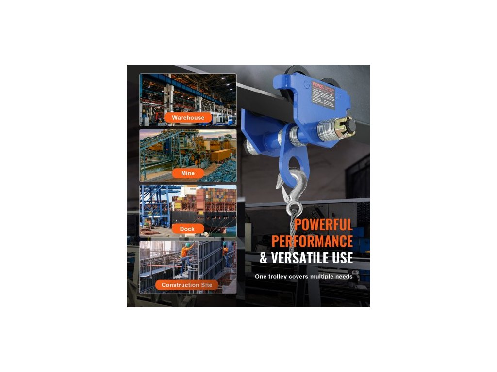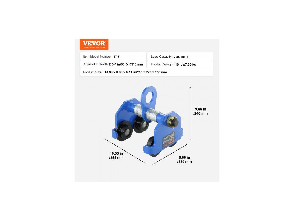 Ruční vozík , nosnost 2200 liber/1 tuna, vozík s tlačným nosníkem a dvojitými koly, nastavitelný pro šířku příruby I-nosníku 63,5–177,8 mm, vysoce odolný garážový zvedák z legované oceli pro rovný zakřivený I-nosník