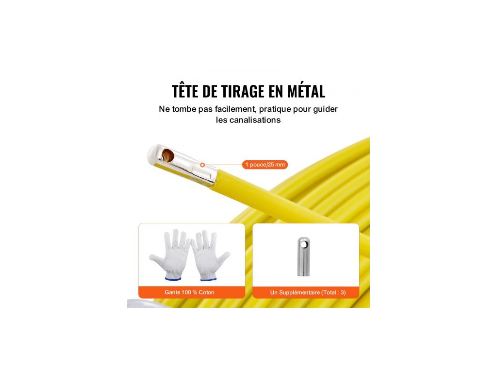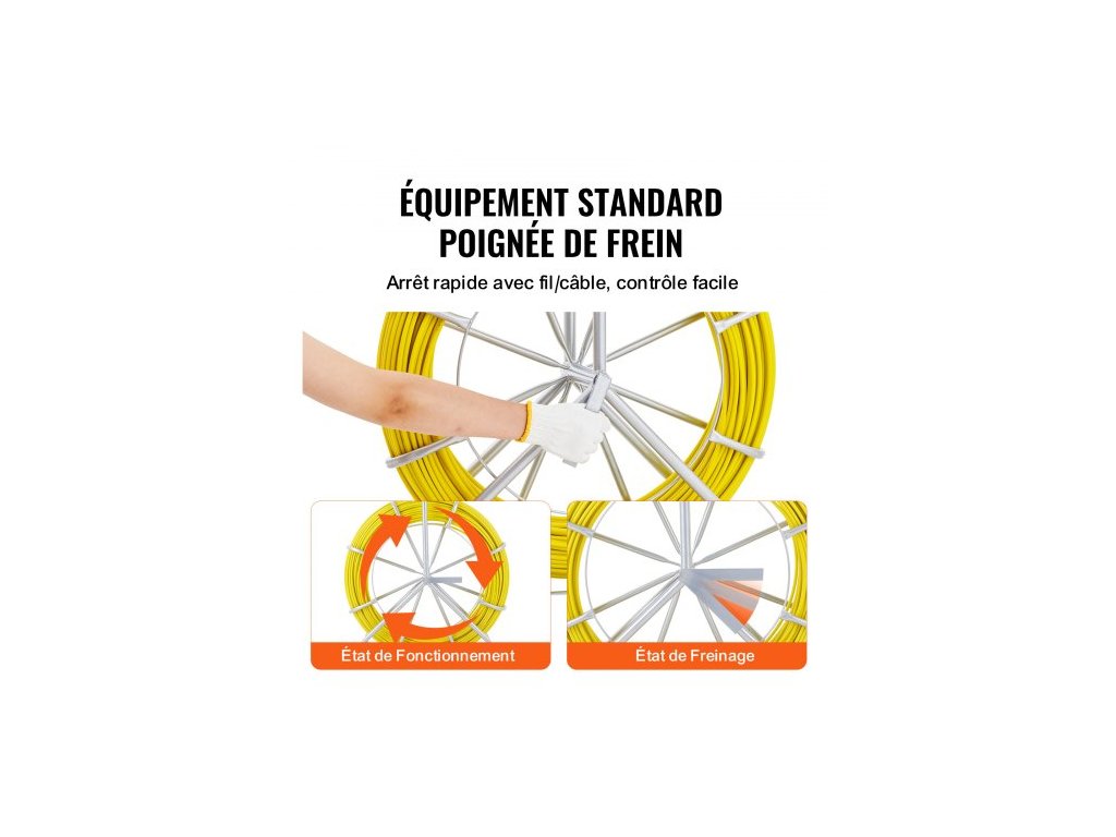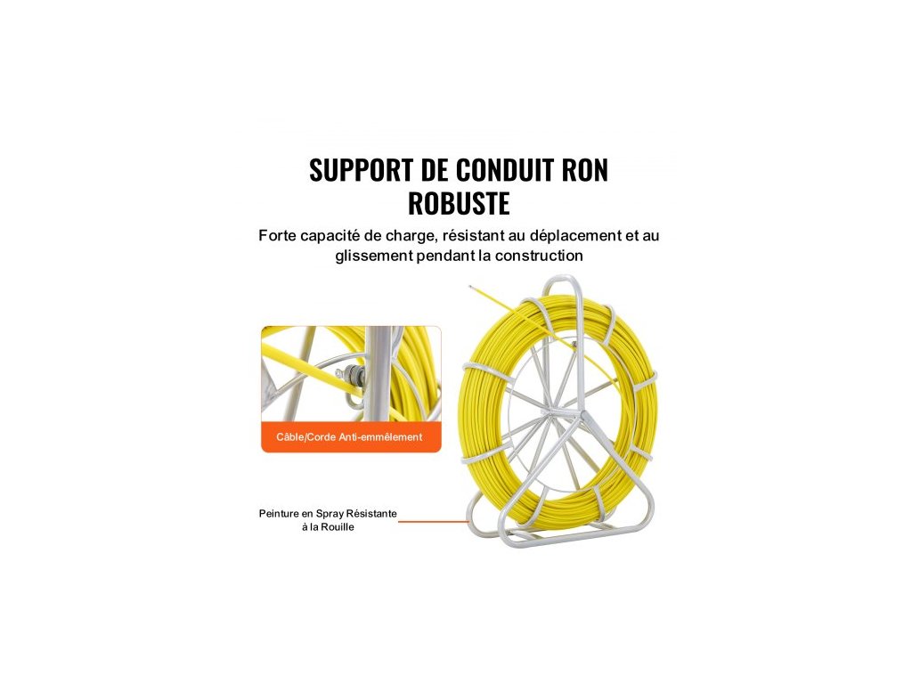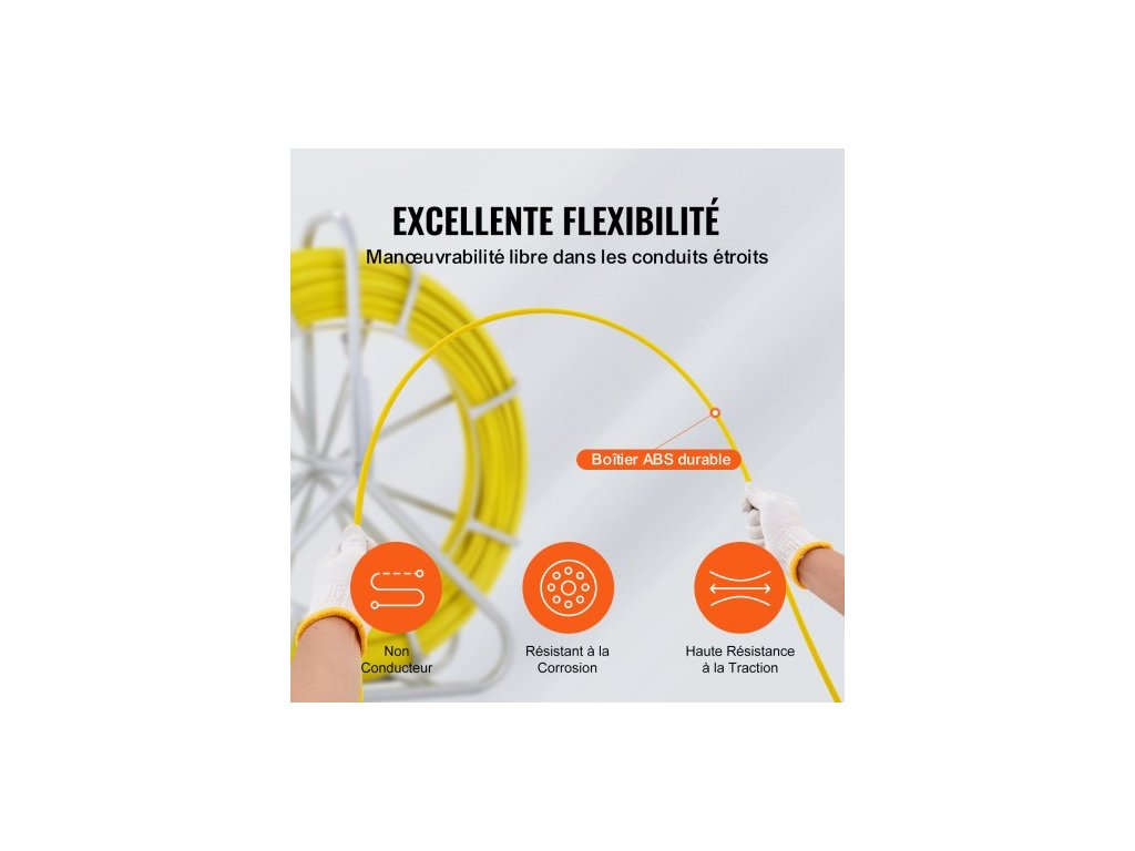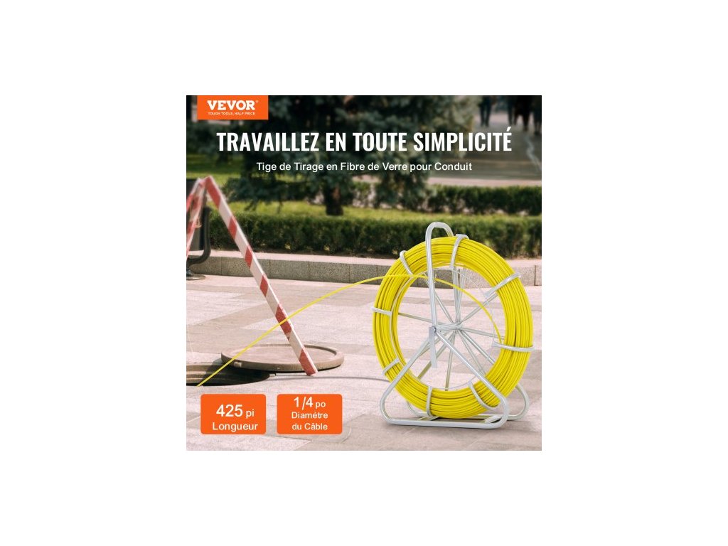 Rybí páska ze skelných vláken, 129,5 m, 6,4 mm, Stahovák drátu z rybí pásky, tyč na vedení kabelu s ocelovým stojanem na cívku, 3 tažné hlavy, Rybářské nástroje pro stěny a elektrické trubky, NevodivýDélka drátu 425 stop