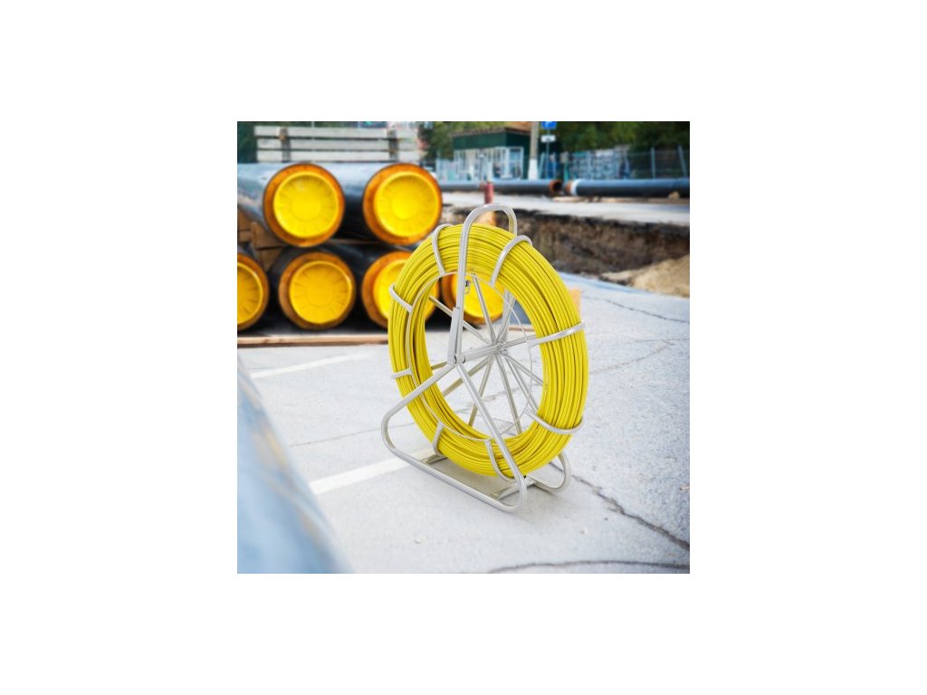 Rybářská páska ze skelných vláken, 129,5 m, 6,4 mm, Stahovák drátu rybí pásky, Tyč na vedení kabelu s ocelovým stojanem na cívku, 3 tažné hlavy, Rybářské nástroje pro stěny a elektrické trubky, Nevodivé