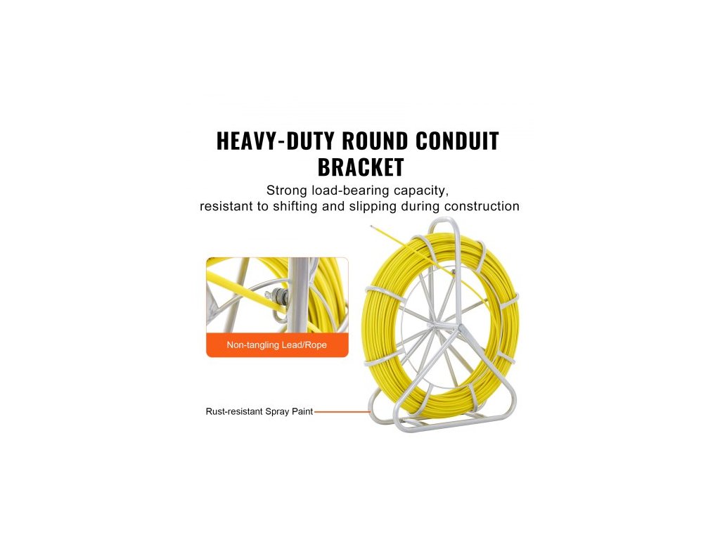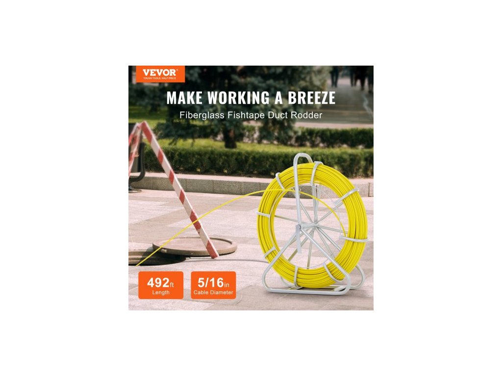 Rybí páska ze skelných vláken, 150,3 m, 8,0 mm, Stahovák drátu z rybí pásky, tyč na vedení kabelu s ocelovým stojanem na cívku, 3 tažné hlavy, Rybářské nástroje pro stěny a elektrické trubky, NevodivýDélka drátu 492 stop