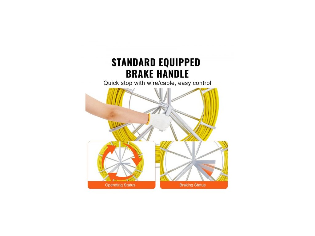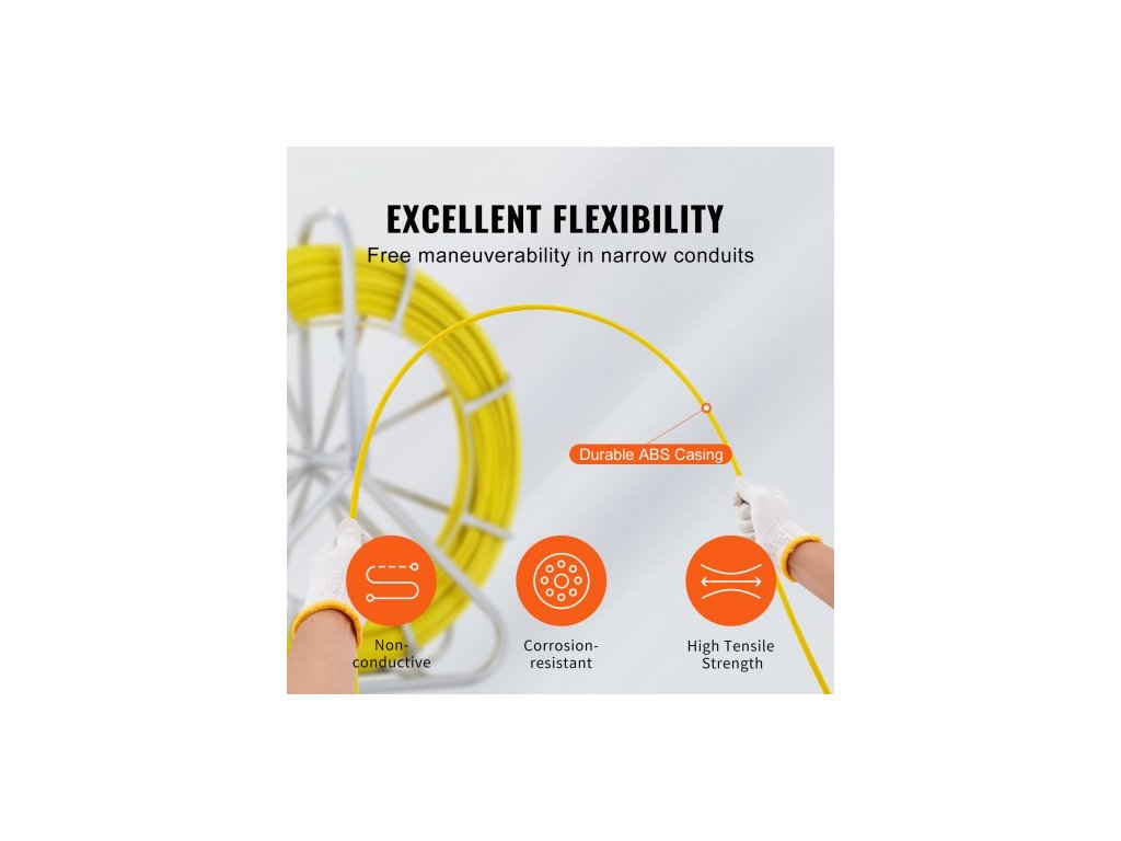 Rybářská páska ze skelných vláken, 150,3 m, 8,0 mm, Stahovák drátu rybí pásky, Tyč na vedení kabelu s ocelovým stojanem na cívku, 3 tažné hlavy, Rybářské nástroje pro stěny a elektrické trubky, Nevodivé