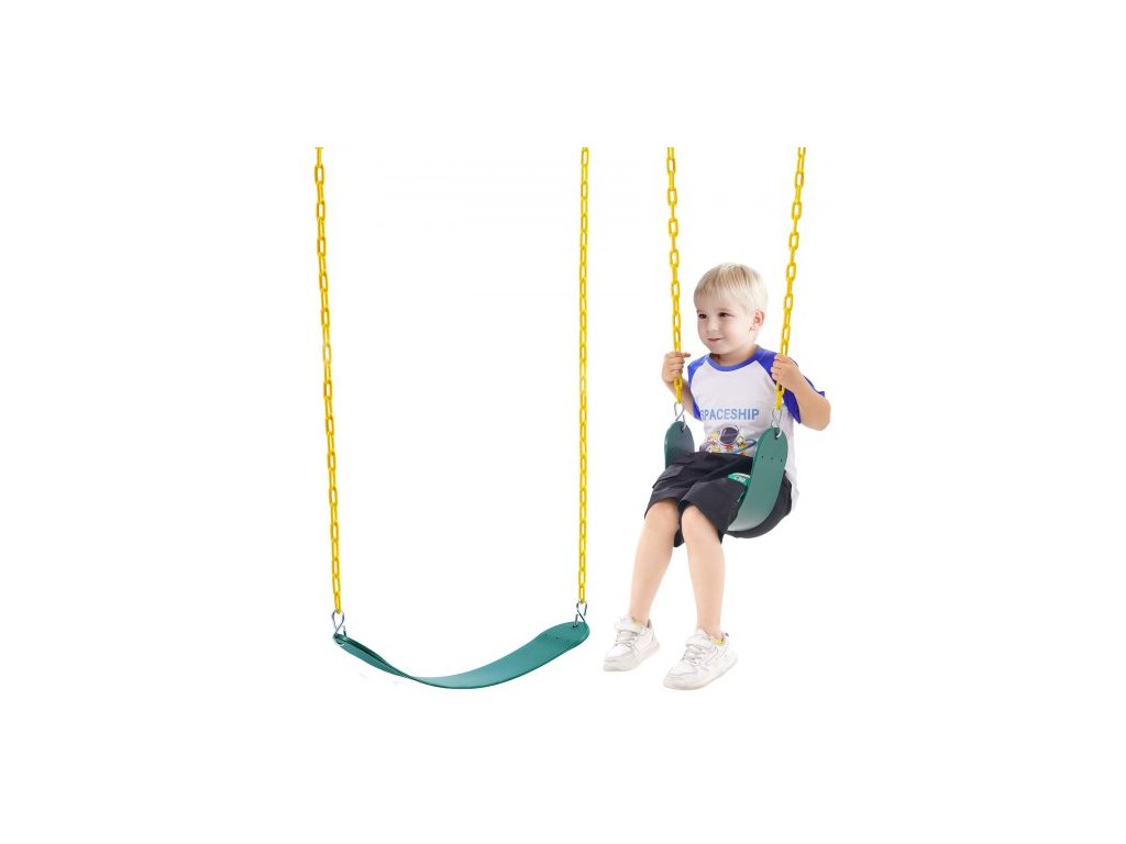 Sada 2 houpacích sedaček, s potaženými řetězy o délce 66 palců a karabinkami, nosnost 136 kg, náhrada za venkovní houpačku, příslušenství k dětským houpačkám, pro venkovní i vnitřní použití, zelená
