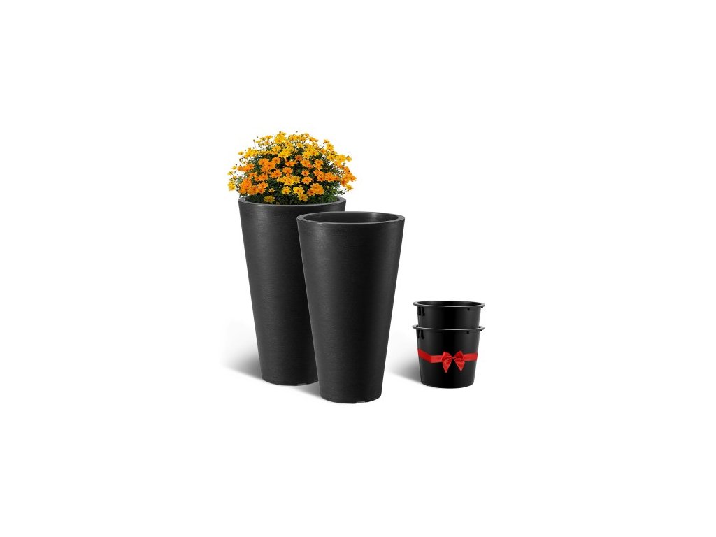 Barva: Černá,Číslo modelu položky: KD9953,Hmotnost výrobku: 3,93 kg / 8,66 lbs,Materiál: PP,Množství v balení: 2 vysoké květináče,Rozměry výrobku: 350 mm x 350 mm x 590 mm / 14D x 24 palců