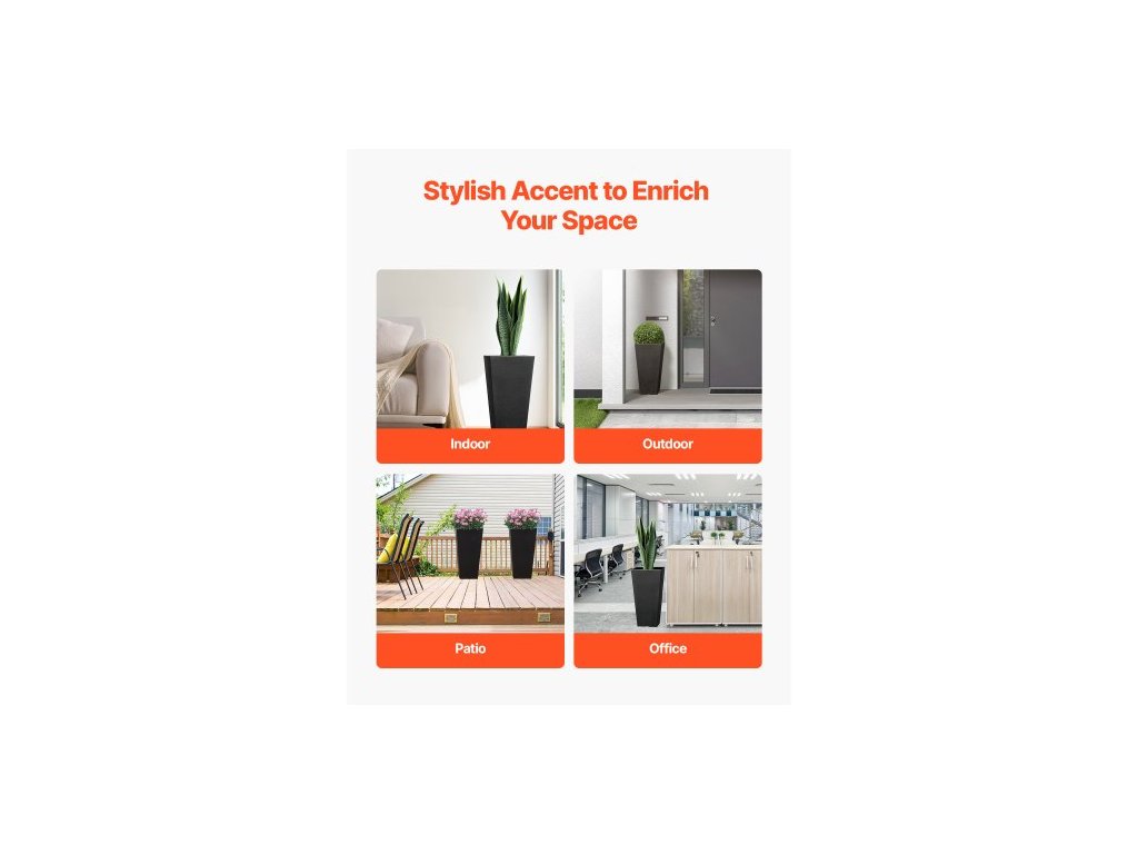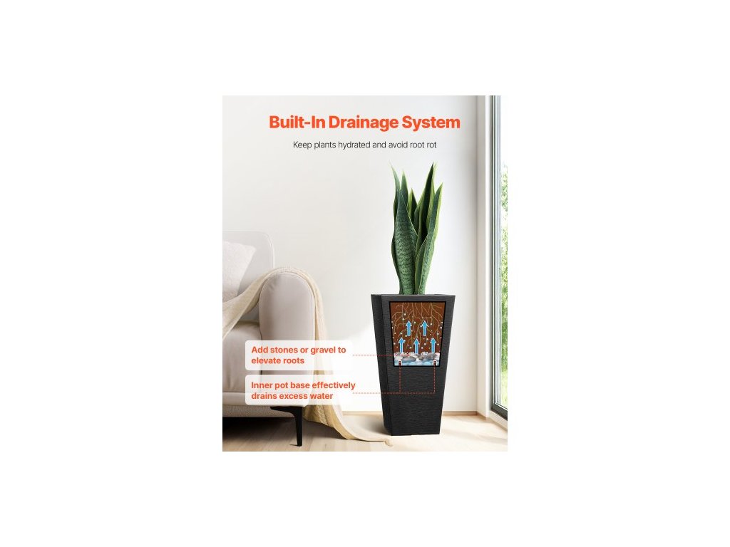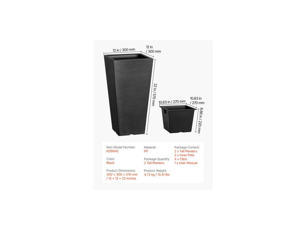 Barva: Černá,Číslo modelu položky: KD9942,Hmotnost výrobku: 4,72 kg / 10,41 lbs,Materiál: PP,Množství v balení: 2 vysoké květináče,Rozměry výrobku: 300 x 300 x 570 mm / 12 x 12 x 22 palců