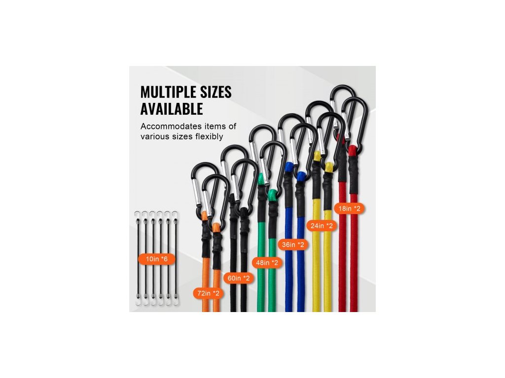 Sada 30 bungee šňůr , 8mm odolné bungee popruhy s ocelovými karabinami A3, obsahuje přenosnou úložnou tašku 10", 18", 24", 36", 48", 60", 72", 6 klipů a úchytů na stříškuIdeální pružnost