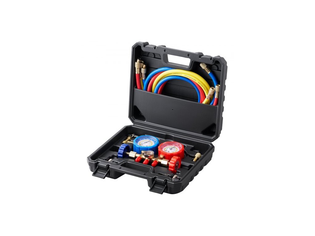 Sada 3cestných diagnostických měřičů pro chladiva R134A, R22, R12, R502. Sada měřičů klimatizace s hadicemi o délce 152 cm, spojkami a kohoutkem pro údržbu automobilových klimatizací. Kompatibilní s většinou zařízení. Na cestách. Snadná obsluha. Dvojitá přesnost. Extra dlouhá hadice o délce 1,5 m. Spolupracují. Životnost: 2 roky. Typ: Sada 3cestných měřičů, Měřicí rozsah: 0~500 psi (vysokotlaký manometr) -30~350 psi (nízkotlaký manometr). Použitelné chladivo: R134A-R22-R12-R502. Číslo modelu: WZ--A301. Hmotnost výrobku: 2,2 kg. Účel: Naplnění chladiva a testování klimatizace. systém,Materiál: Mosaz,Třída přesnosti: ±1,6,Rozměry výrobku: 11,2 x 10 x 3,5 palce/28,4 x 25 x 8,9 cmDoplňkové parametry