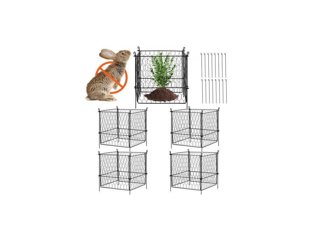 Sada 4 chráničů rostlin před zvířaty, chránič rostlin z pletiva 13,4'' x 13,4'', klece na rostliny pro venkovní rostliny, květiny a zeleninu, chrání před veverkami, 16 ks kovové sítěUniverzální klec na rostliny