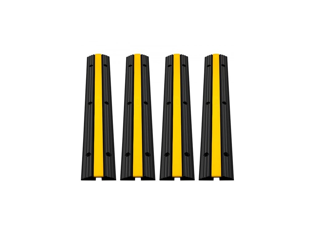Sada 4 ks 1-kanálových gumových chráničů kabelů 102x15,5x3 cm, odolné, nosnost 8164,7 kg, kryt kabelu, drátu, šňůry, rampy, zpomalovací prahy, hadice, příjezdová cesta, ochranný kryt kabelu, rampyKabelový kanál