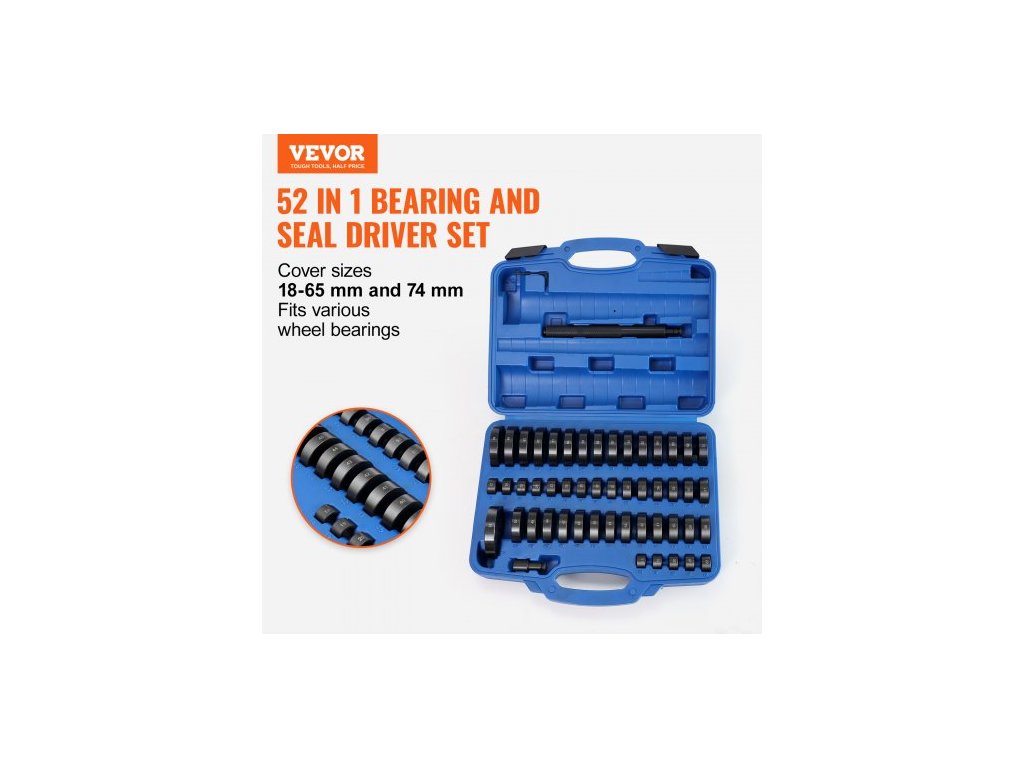 Sada 52dílné sady ložisek a těsnění pro zakázková ložiska, věnec ložiska nápravy převodového kola, montážní a demontážní nástroj pro těsnění, metrické kotouče 18-65 mm a 74 mm, stahovák na ložiska a lisovací nástroj