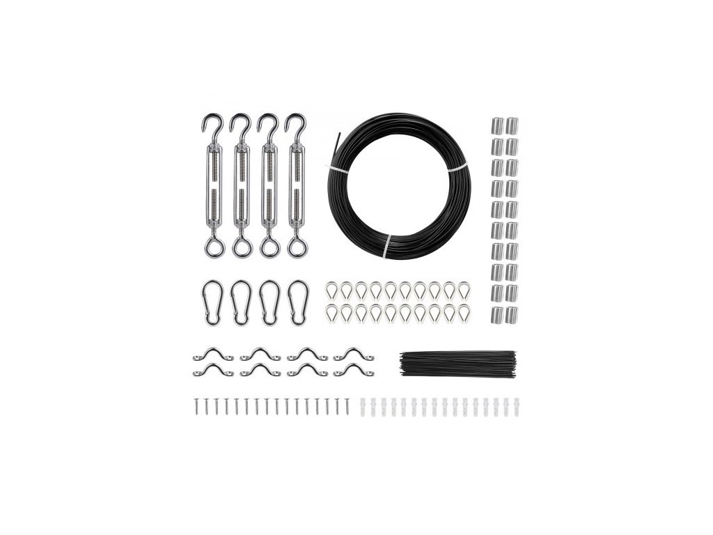 Sada lan s vinylovým potahem , kabel 3/32" skrz nerezovou ocel o průměru 1/16", konstrukce 7x7 pramenů s 189 doplňky pro světelné řetězy, prádelní šňůru, vinnou révu, 164 stop černáDoplňky připravené na párty