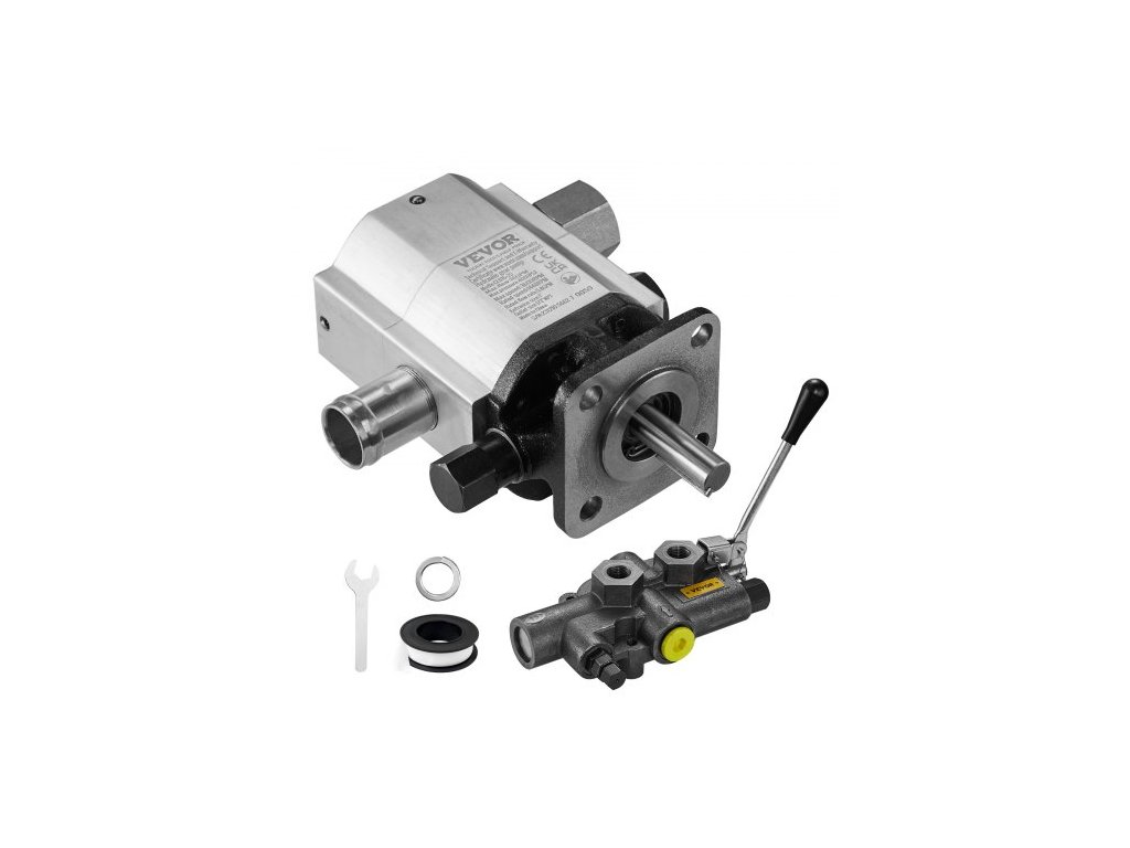 Sada hydraulického čerpadla pro štípačku dřeva , 60,6 l/min, 2stupňové hliníkové hydraulické zubové čerpadlo 27,6 MPa, s ventilem, vstup 2,54 cm, výstup 1,27 cm NPT, 3600 ot./min, pro štípačky dřeva s malým motorem