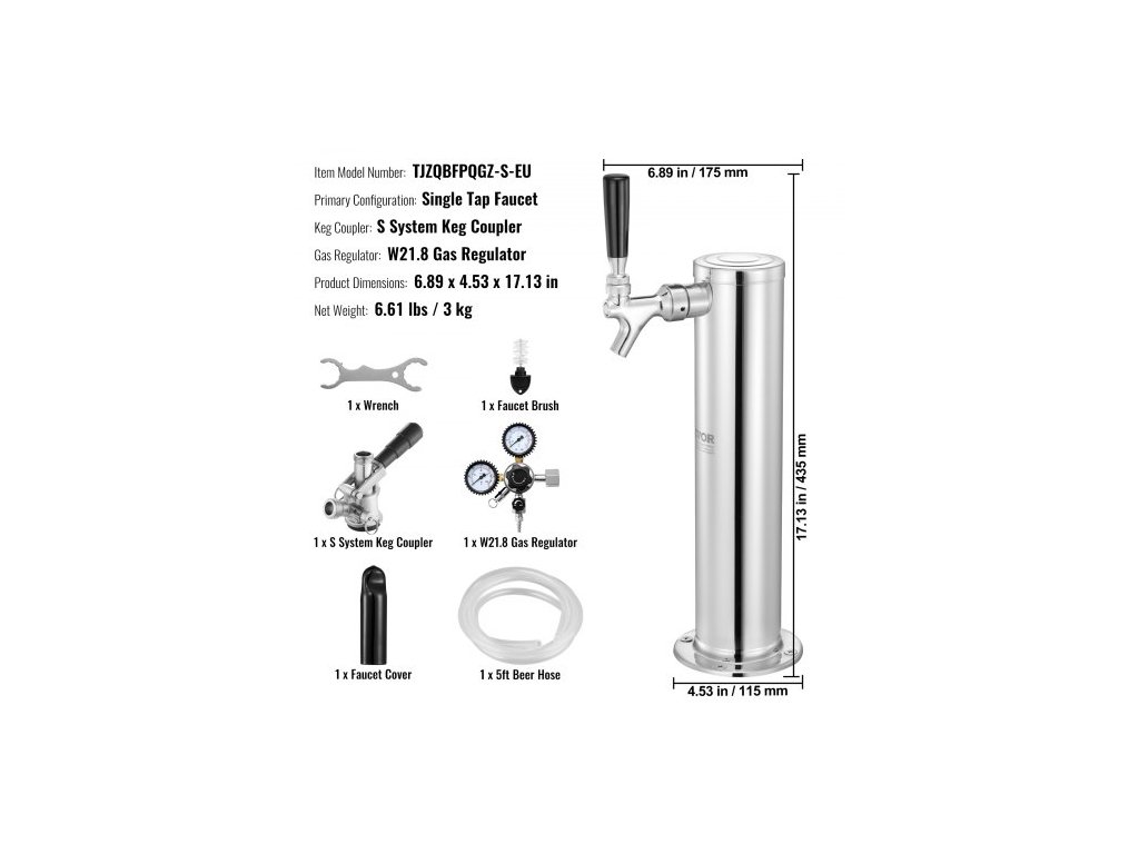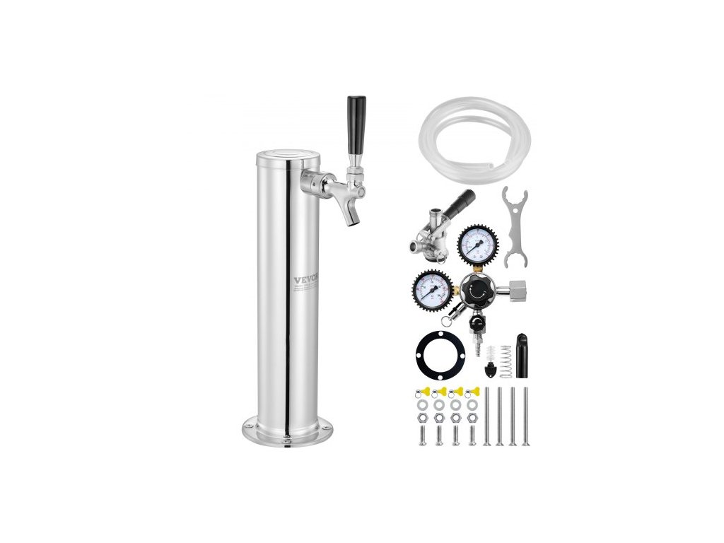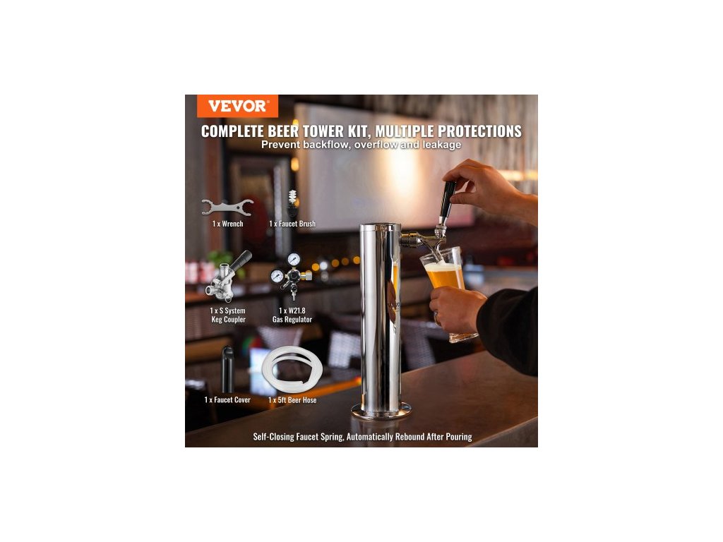 Sada Kegerator Tower, sada pro přestavbu piva na jeden kohout, výčepní věž z nerezové oceli s dvojitým manometrem W21.8 regulátor a spojkou S-System pro párty a domácí použití