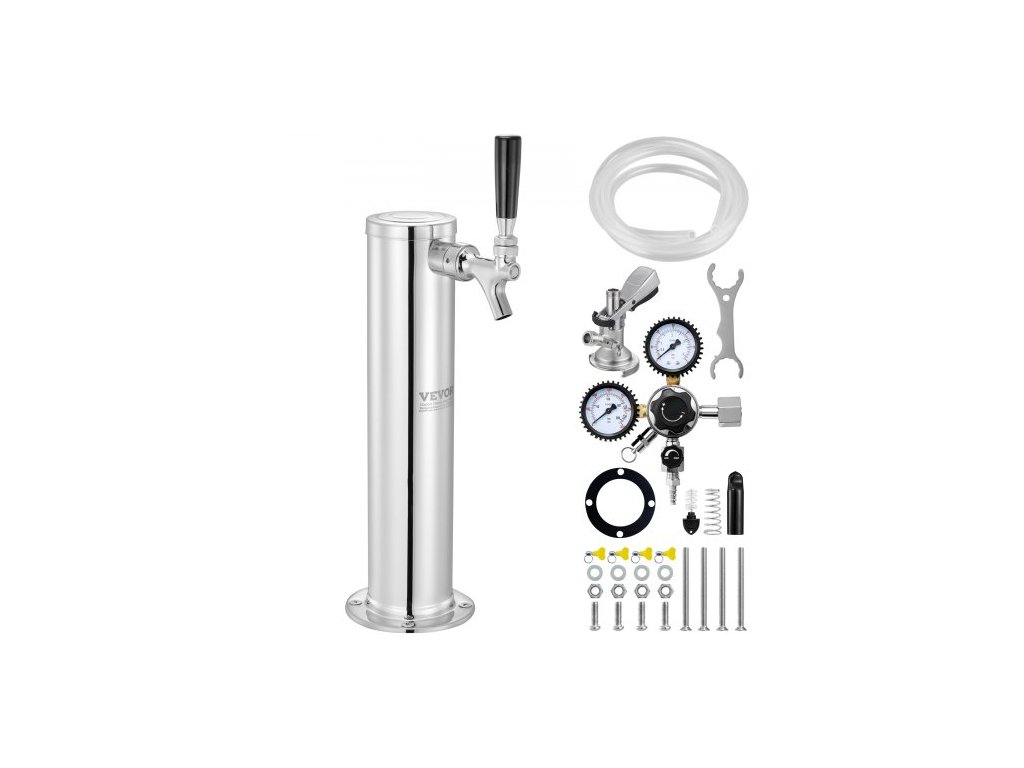 Sada Kegerator Tower, sada pro přestavbu piva na jedno kohoutko, nerezový výčepní stojan na pivo s regulátorem W21.8 a spojkou A-System, odkapávací miska na pivo pro domácí pártyUchovávejte si čerstvost, vychutnejte si každou chuť