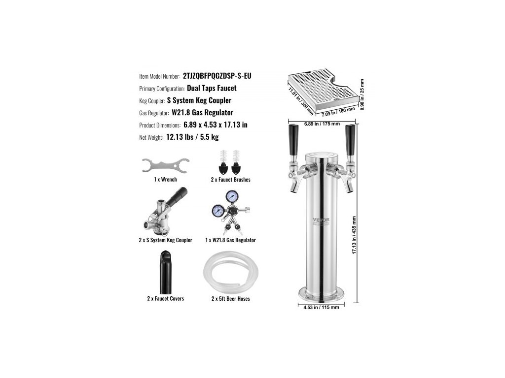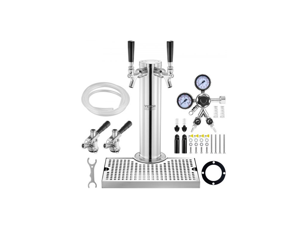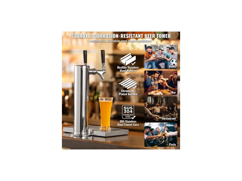 Sada Kegerator Tower, sada pro přestavbu piva na dvojité kohouty, výčepní věž z nerezové oceli s regulátorem W21.8 s dvojitým manometrem a spojkou S-System, odkapávací miska na pivo pro domácí pártyUchovávejte si čerstvost, vychutnejte si každou chuť