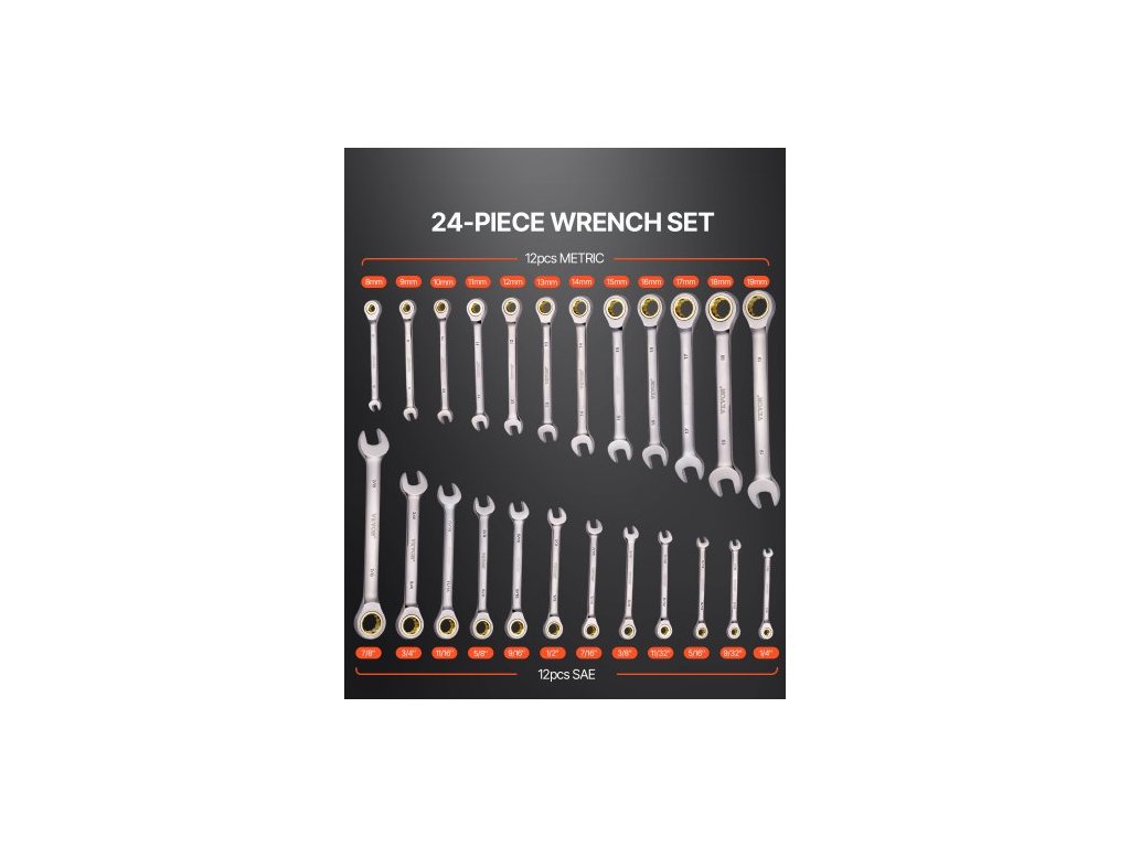 Sada kombinovaných klíčů , 24dílná sada ráčnových klíčů s organizérem, sada klíčů z chrom-vandiové oceli SAE 1/4" až 7/8", metrické 8 mm až 19 mm, ideální pro běžnou domácnost, opravy automobilů, nouzové situace24dílná sada klíčů