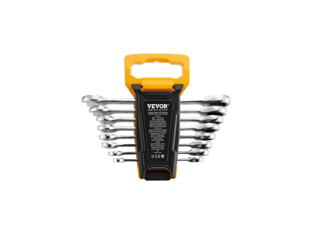 Sada kombinovaných klíčů , 8dílná sada ráčnových klíčů s organizérem, sada metrických klíčů z chrom-vaniové oceli 8 mm až 19 mm, ideální pro běžnou domácnost, garáž, dílnu, autoservisy, nouzové situace