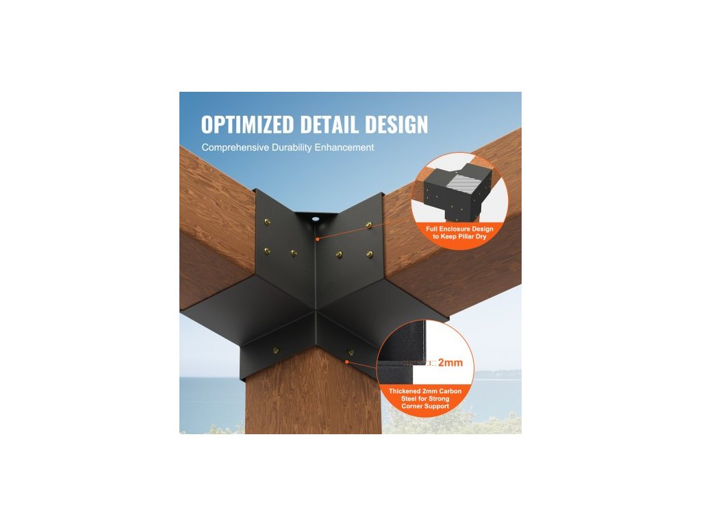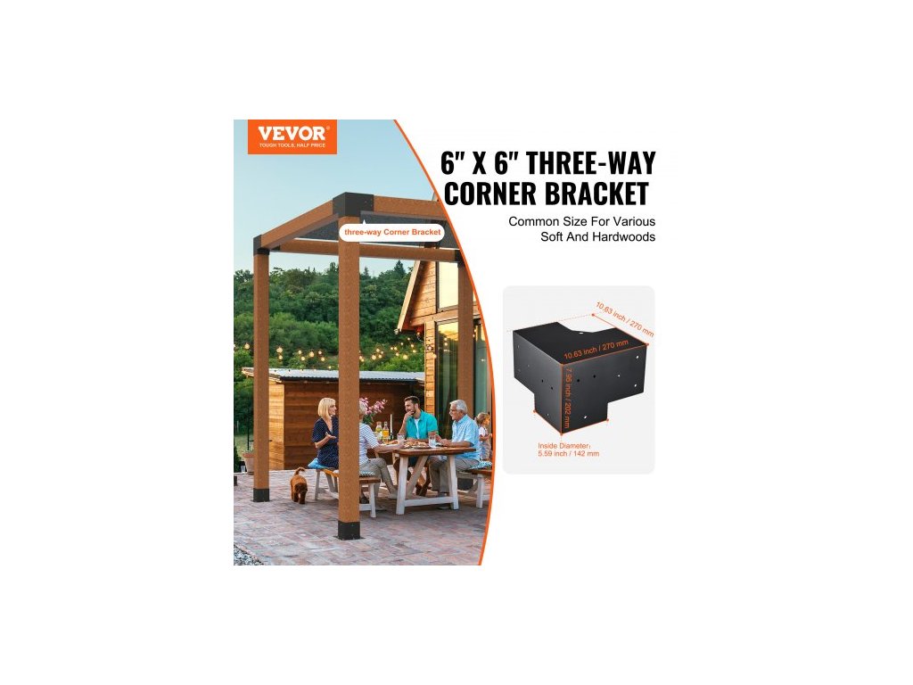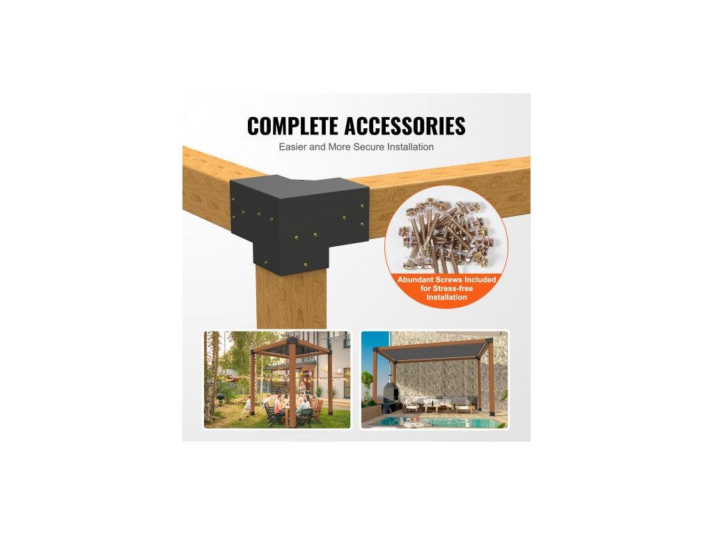 Sada konzolí pro pergolu 6''x6'' (vnitřní rozměr 5,6x5,6), 4 ks 3cestných robustních rohových konzolí, sada pro kutily, snadná instalace dřevěných trámů pro altány, terasy, venkovní srubyVysoce kvalitní konzole pro pergoly