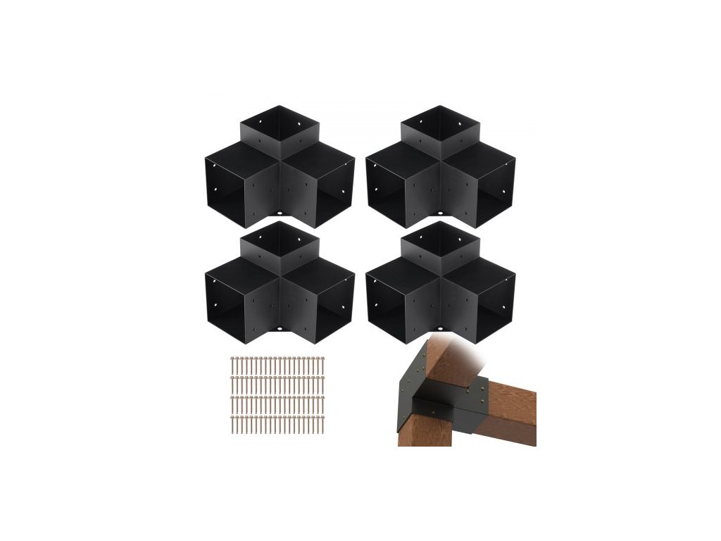 Sada konzolí pro pergolu 6''x6'' (vnitřní rozměr 5,6x5,6), 4 ks 3cestných robustních rohových konzolí pro dřevěné práce, sada základů sloupků pro kutily, snadná instalace, dřevěné trámy pro altány, terasy, venkovní sruby
