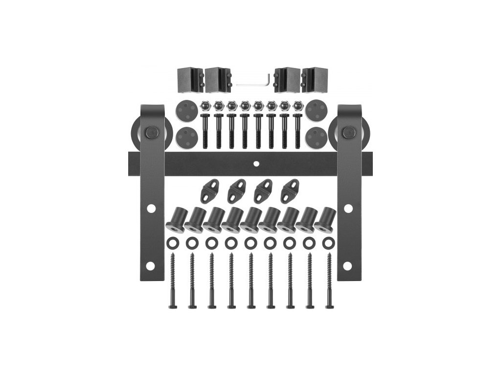 Sada kování pro posuvné dveře stodoly , sada dveří stodoly 365,8 cm, sada kování pro dvojité dveře stodoly s nosností 149,7 kg, kolejnice pro dveře stodoly z uhlíkové oceli, látání dveří pro tloušťku 4,0-4,5 cm a šířku dveřního panelu 182,9 cm