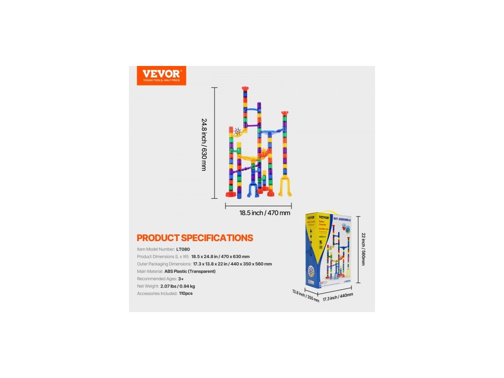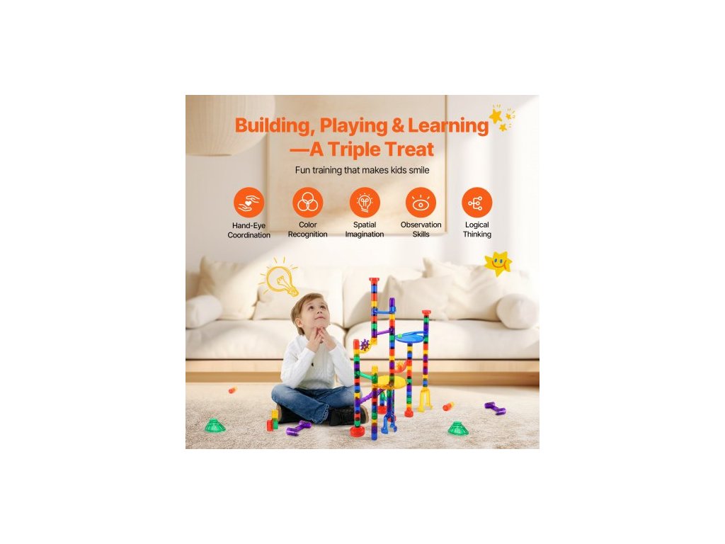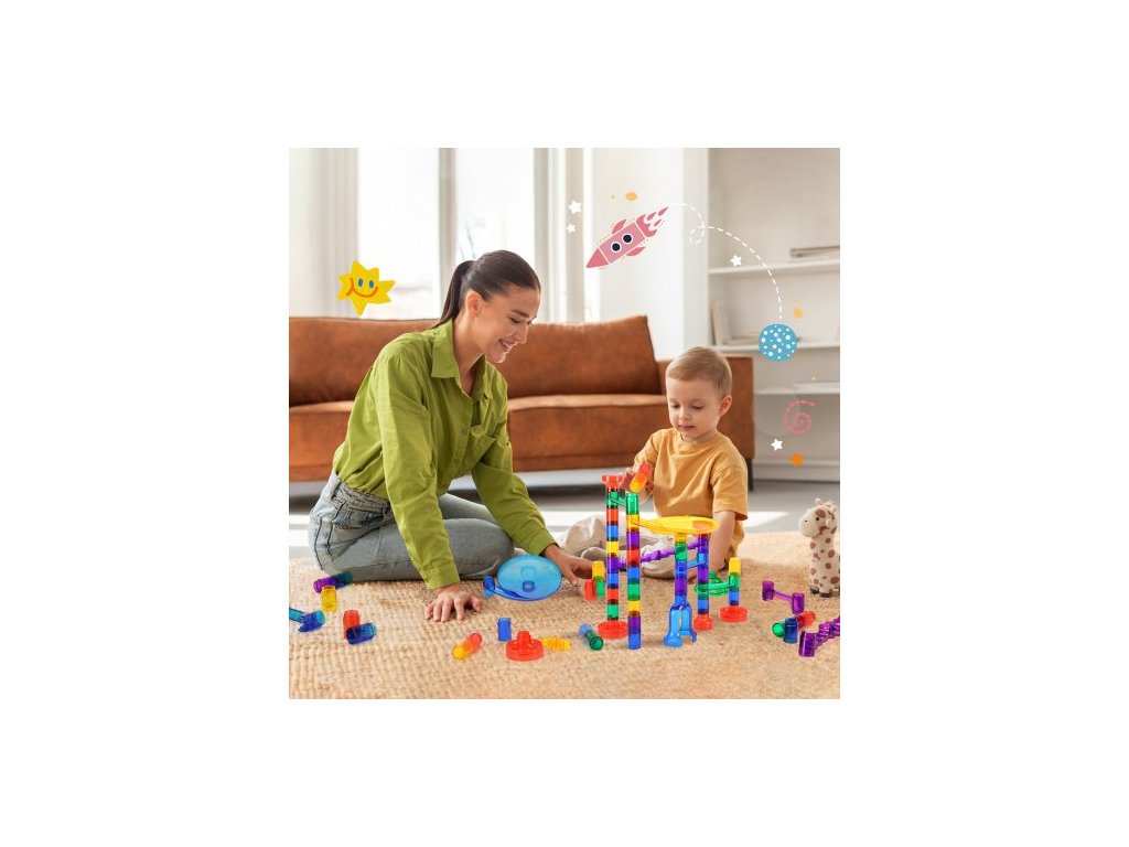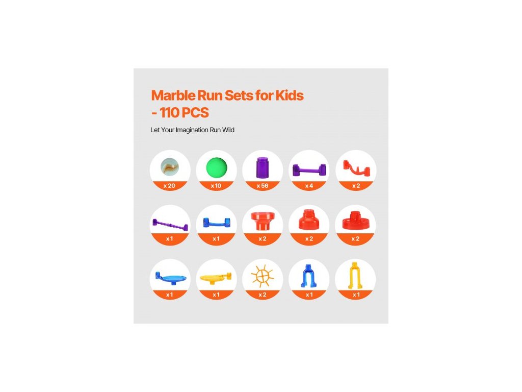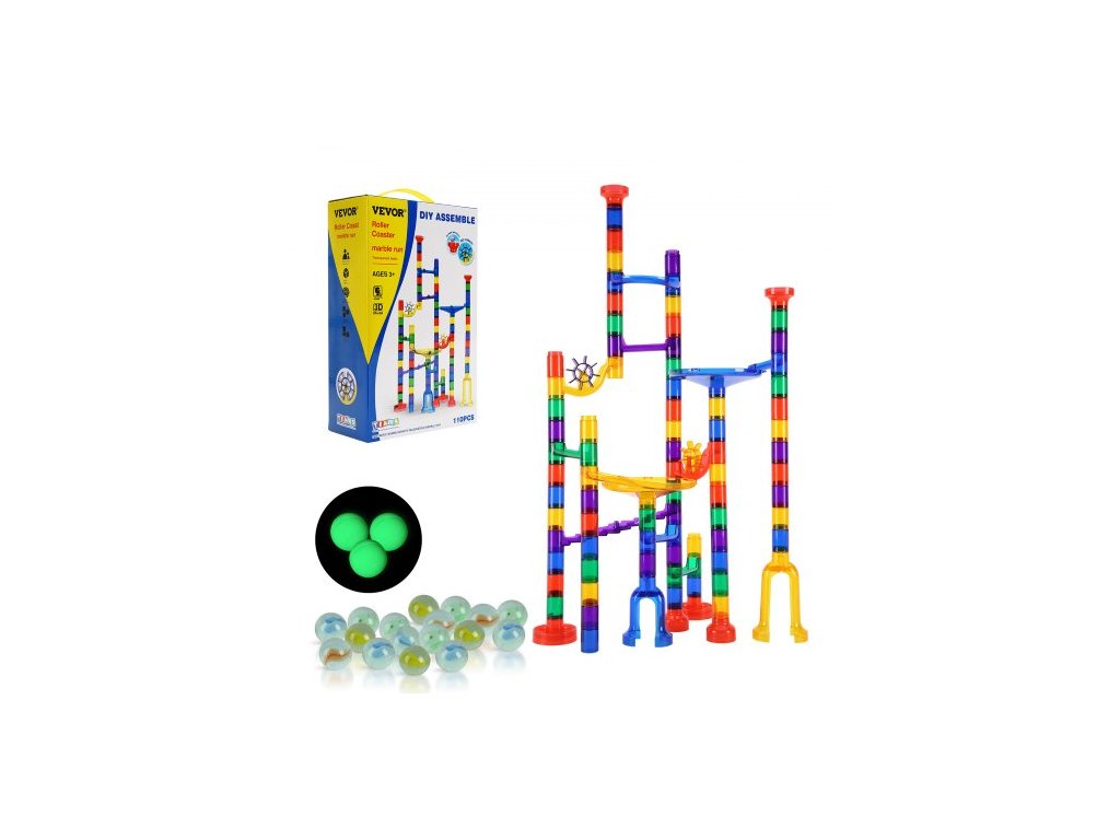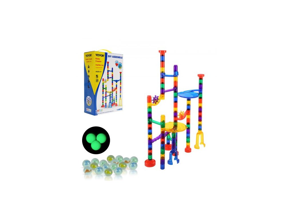 Sada mramorových běhů, 110dílná mramorová bludiště - stavebnice pro mysl, s 10 kuličkami svítícími ve tmě + 20 skleněnými kuličkami, vzdělávací a vzdělávací hračky STEM pro děti, chlapce a dívky od 3 letIdeální dárek