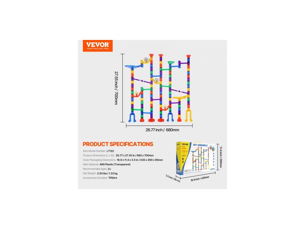 Sada mramorových běhů, 150dílná mramorová bludiště - stavebnice pro mysl, s 10 kuličkami svítícími ve tmě + 40 skleněnými kuličkami, vzdělávací a vzdělávací hračky STEM pro děti, chlapce a dívky od 3 letIdeální dárek
