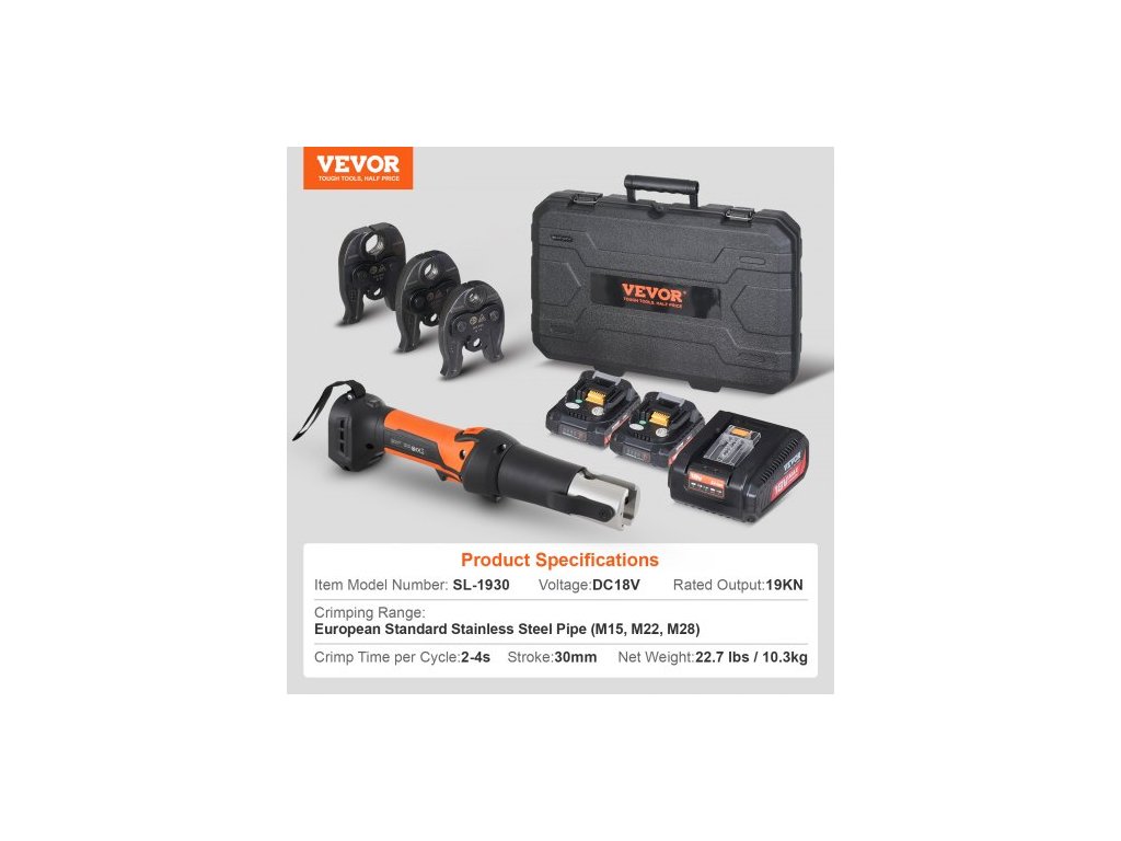Doba krimpování na cyklus: 2–4 s,Zdvih: 30 mm,Rozměry výrobku: 16,1x3,1x4,7 palce / 410x78x120 mm,Jmenovitý výkon: 19 kN,Napětí: DC18 V,Číslo modelu položky: SL-1930,Čistá hmotnost: 22,7 lbs / 10,3 kg