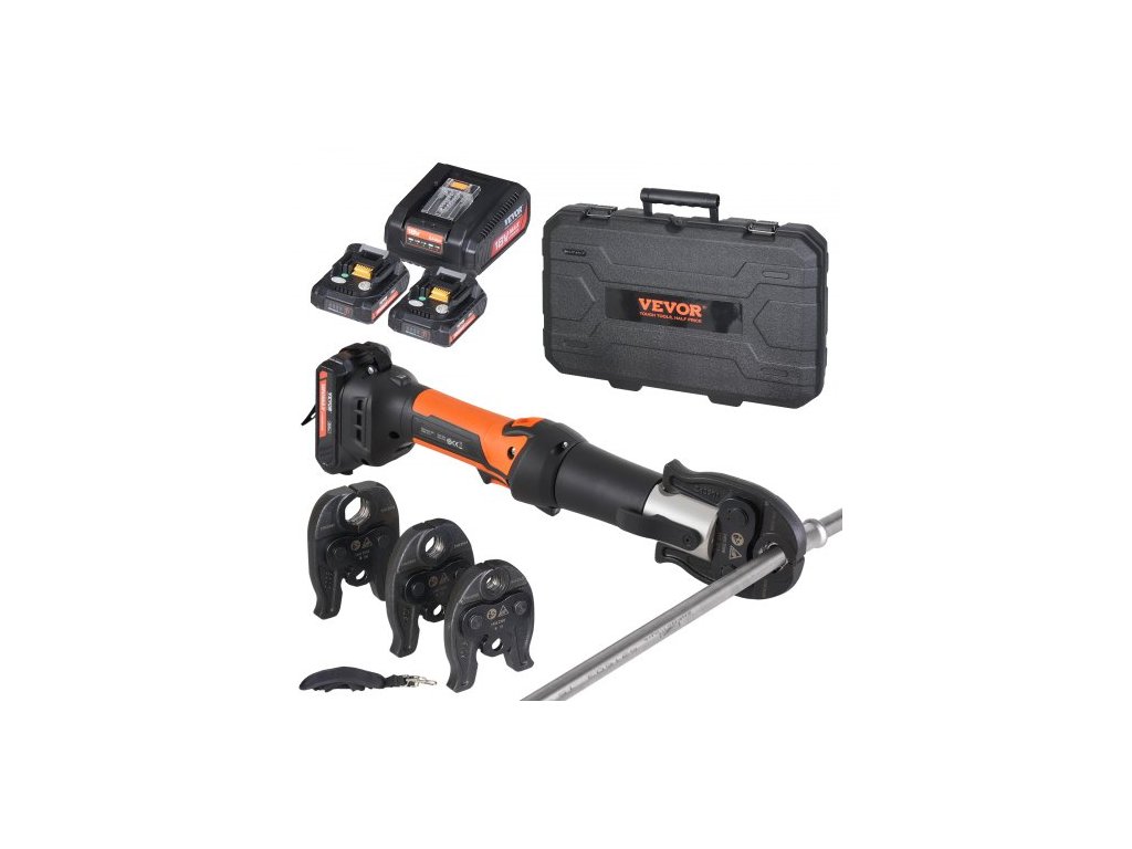 Sada lisovacích nástrojů a baterií , profesionální lisovací nástroj, elektrický krimpovací nástroj na trubky s čelistmi M15, M22, M28, sada lisovacích nástrojů s 2 ks baterií 18V 2,0Ah, rychlonabíječkou a přepravním pouzdremRychlý a přesný krimpovací provoz