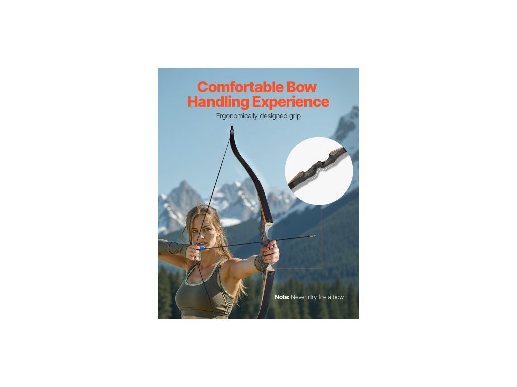 Sada reflexního luku a šípů , 60palcové dřevěné luky na takedown, ergonomický balíček reflexního luku pro praváky, dlouhý luk pro venkovní střelbu na terč, pro začátečníky až pokročilé, 20 kgErgonomický design