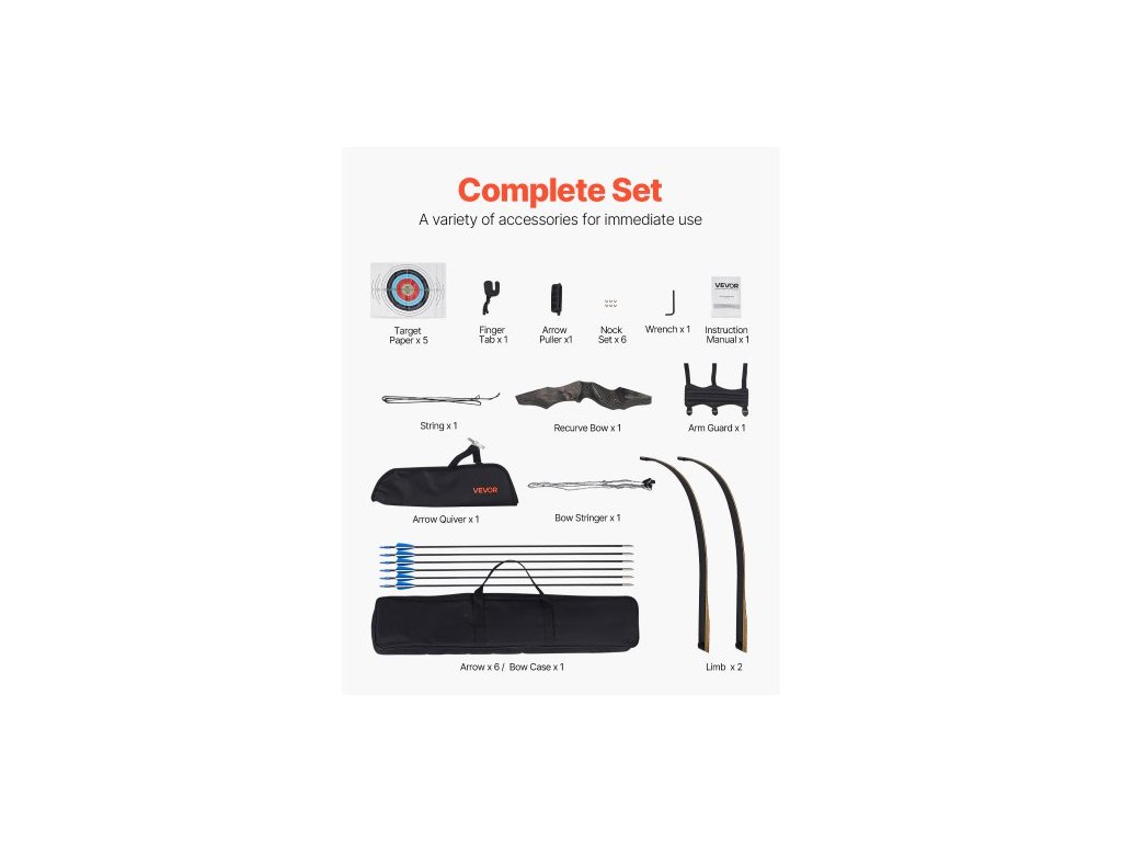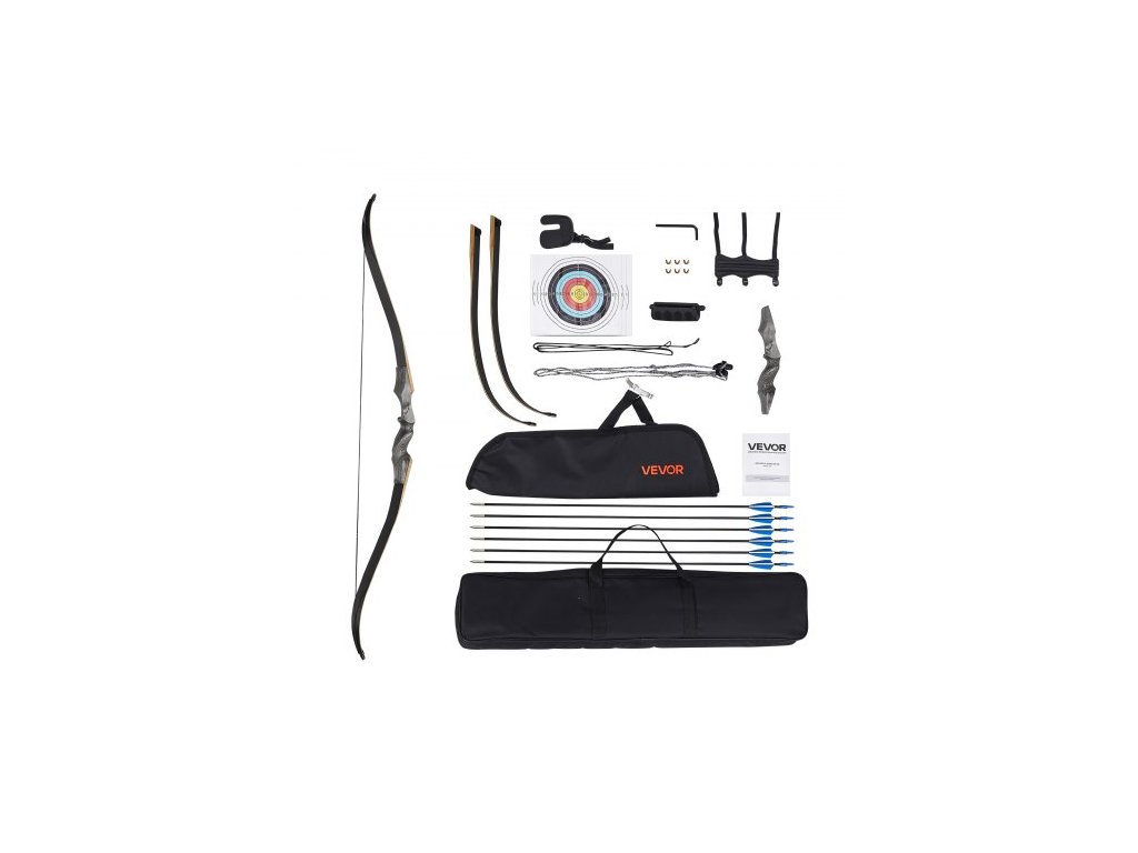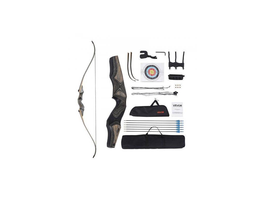 Sada luku a šípů , 60palcový dřevěný luk na takedown, ergonomický reflexní luk pro praváky, dlouhý luk pro venkovní nácvik střelby na terč, pro začátečníky až pokročilé, 45 liber
